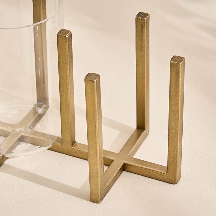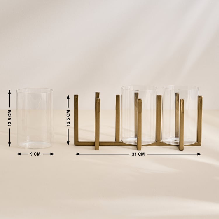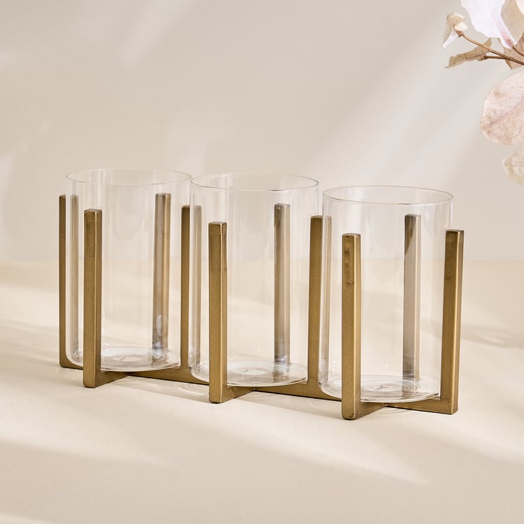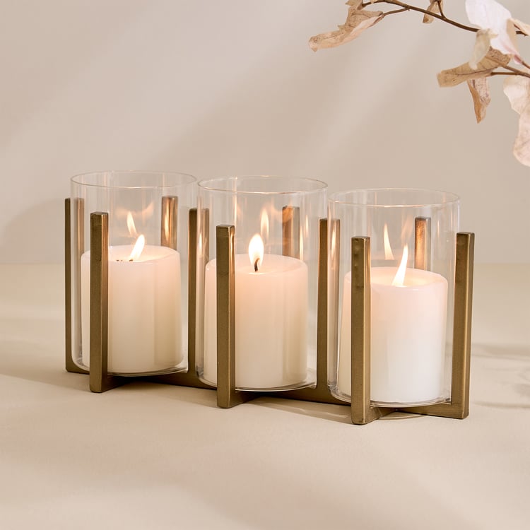 Elevate your home decor with this elegant multi-candle holder. Crafted with glass, a lustrous finish, and a sturdy metal base, it's a visually striking addition to any collection and an ideal decorative accent.