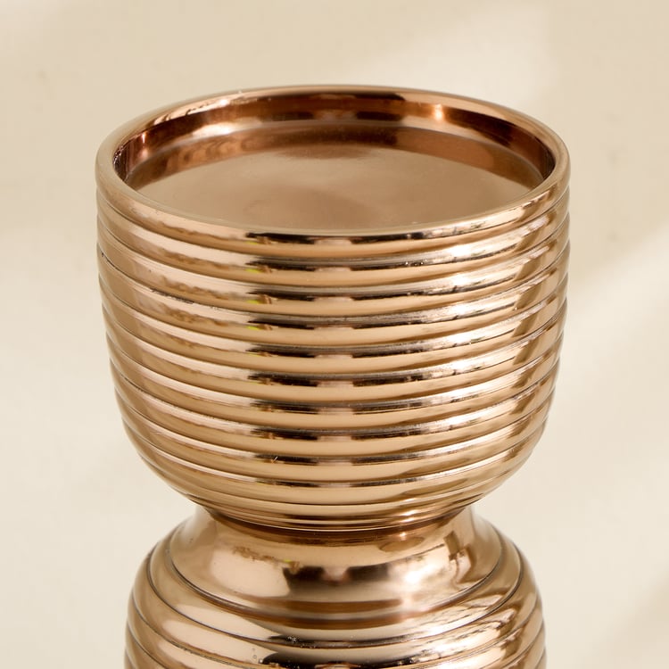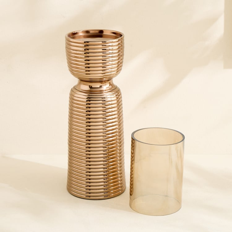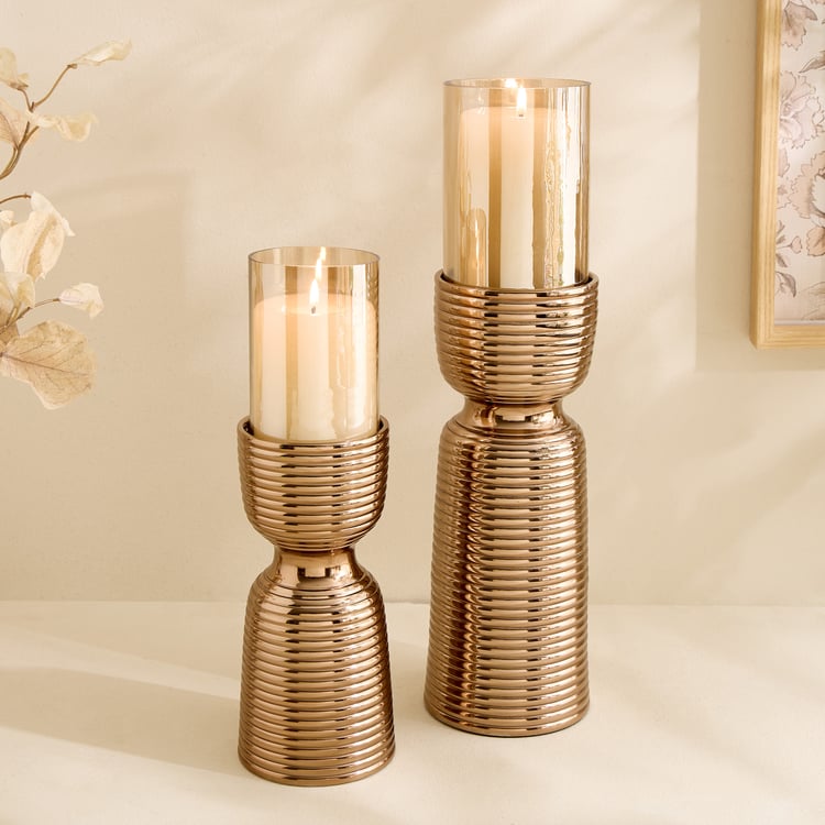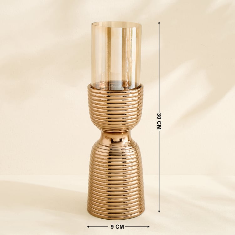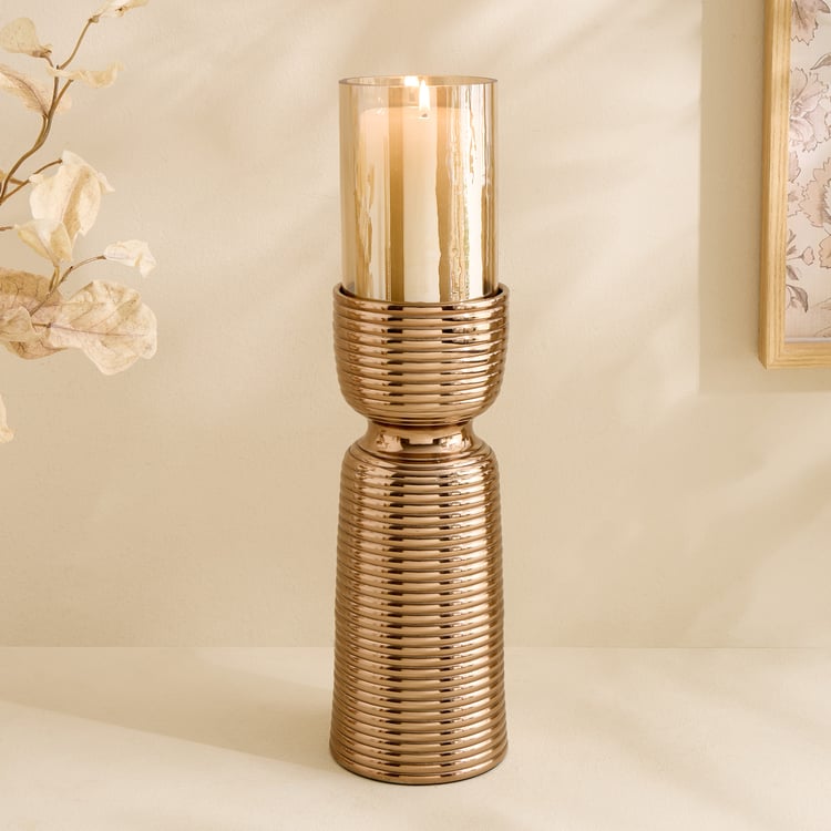 Monalisa Glass and Metal Ribbed Pillar Candle Holder - Medium