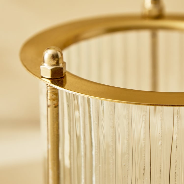 Illuminate your space with this pack of hurricane candle holders. This set features a metal frame with glass holders featuring a ribbed design. Add T-lights or candles shine through to create a cosy space.