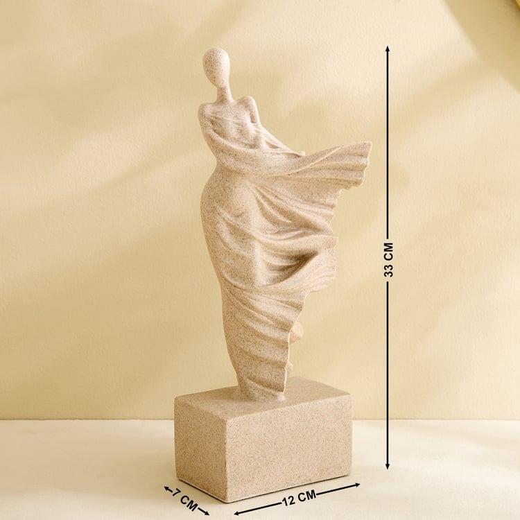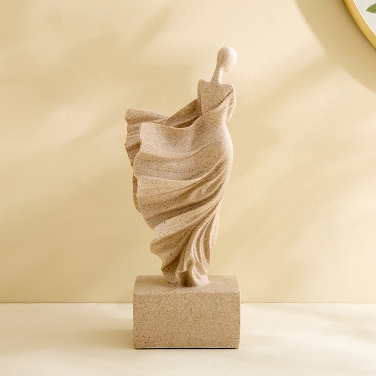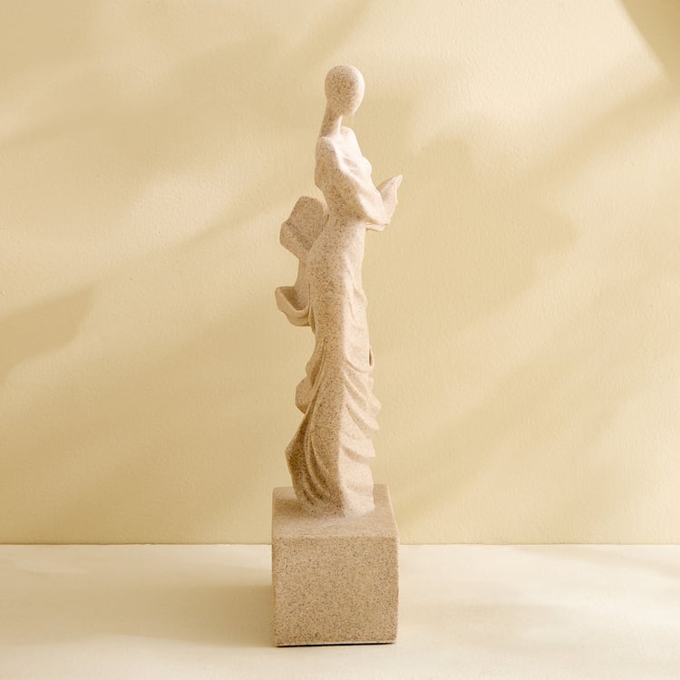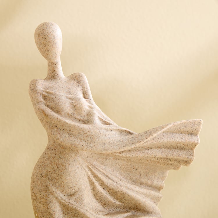 This polyresin lady figurine features elegant sculpted detailing and a graceful pose, offering timeless charm, durable craftsmanship, and a refined decorative accent for interiors.