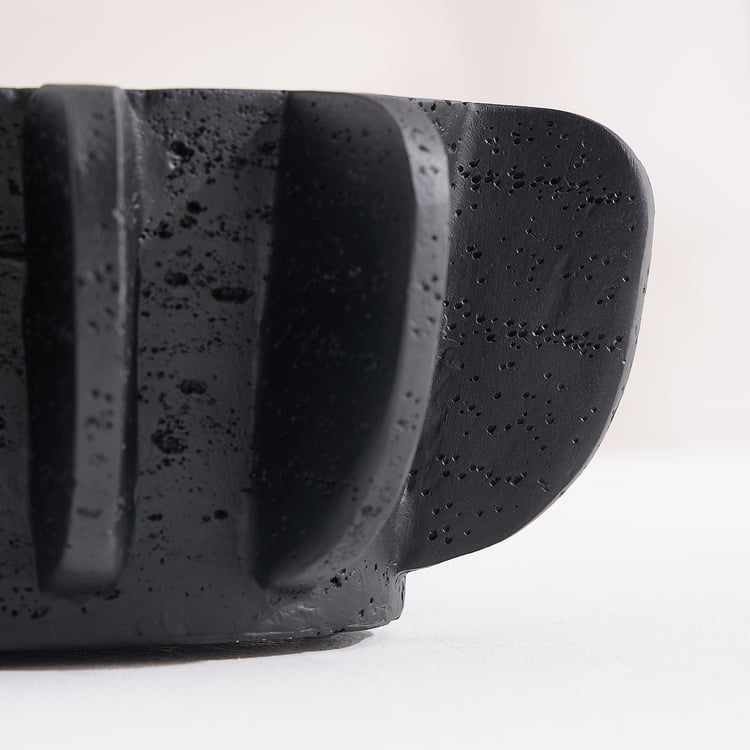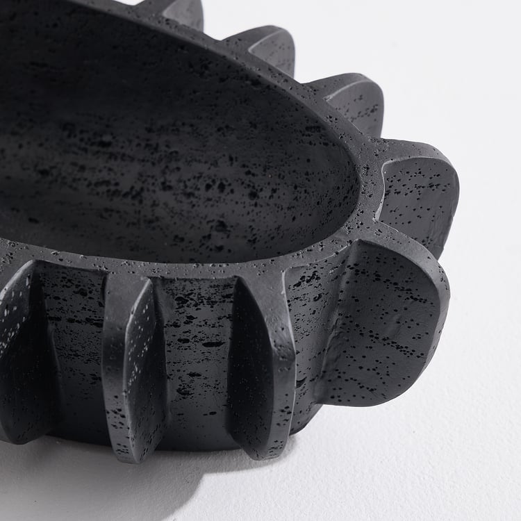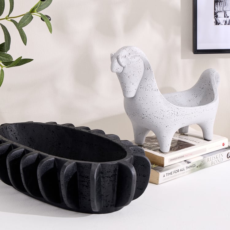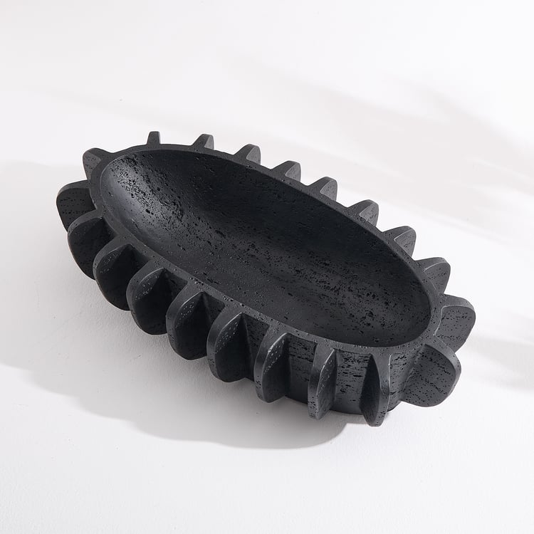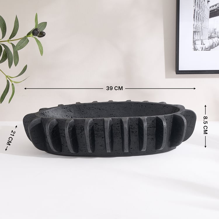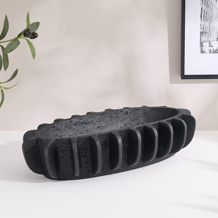 A sleek decorative piece, this bowl brings modern, sculptural appeal to your space. Made of polyresin, it boasts an elongated oval shape and a distinctive ridged exterior for added texture and depth. It is ideal for styling consoles, coffee tables, dining surfaces, or entryways with potpourri, decor fillers, or as a standalone accent.