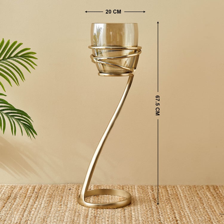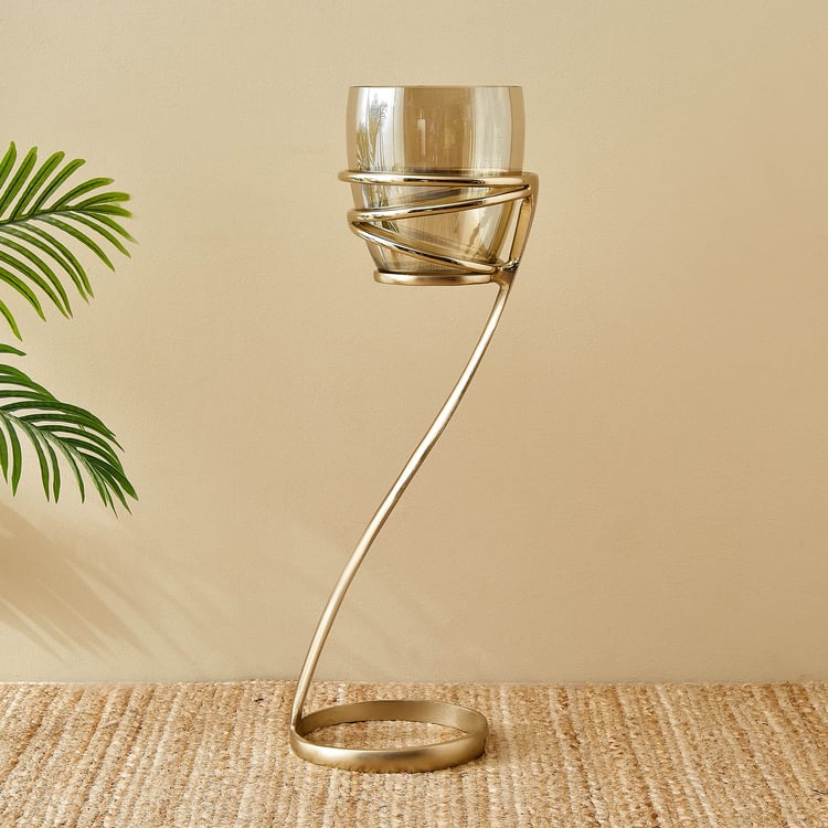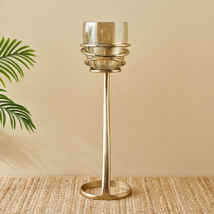 Brim Royale Swirl Glass and Aluminium Floor Candle Holder - Small
