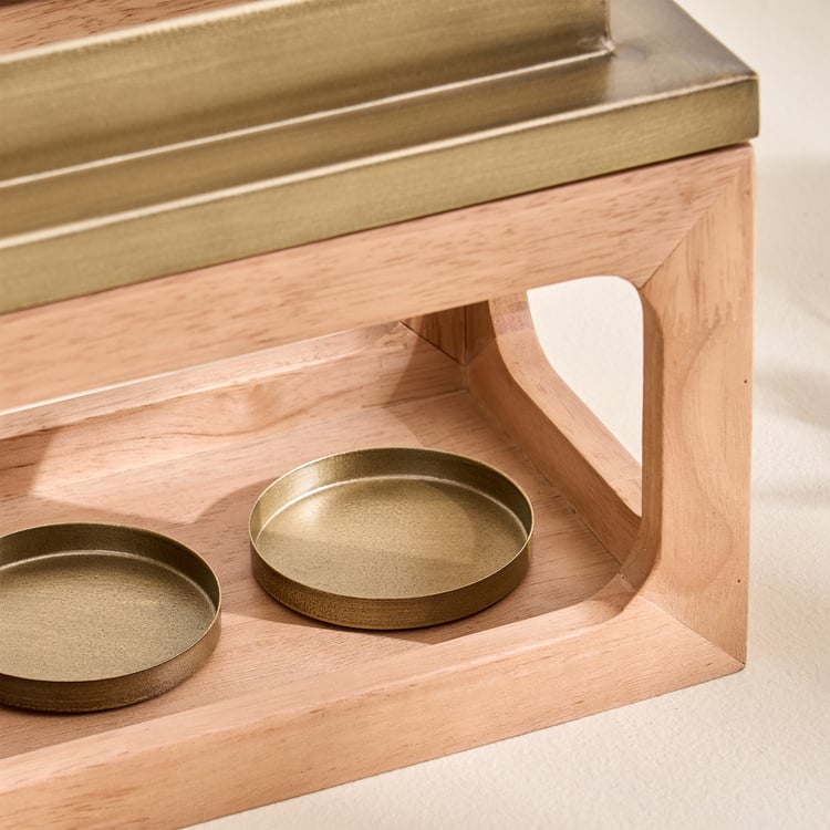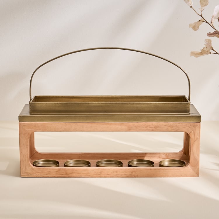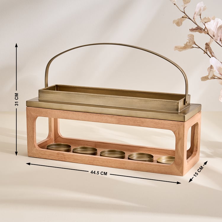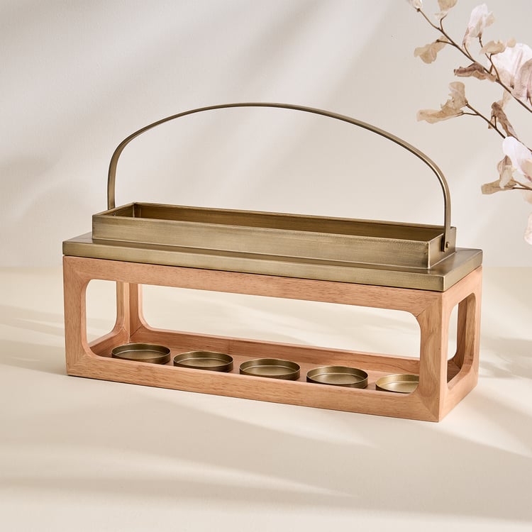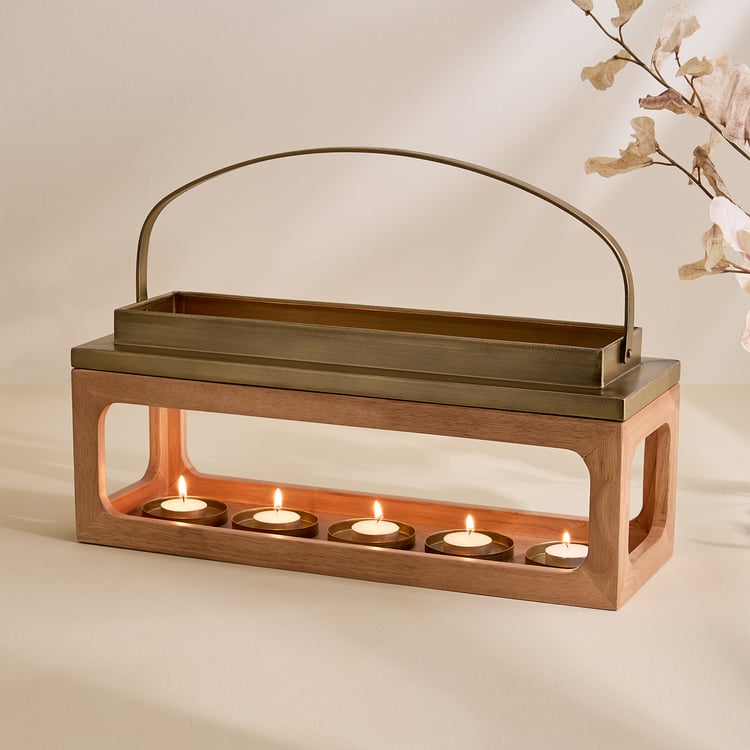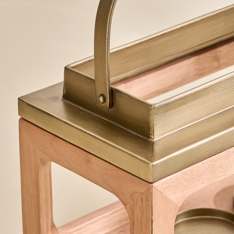 Infuse your home with rustic elegance with this lantern. Meticulously crafted from wood, it features open panes, a metal top for ventilation, and a hanging ring. It is perfect for holding multi T-Light candles, adding a cosy, inviting glow to any setting.
