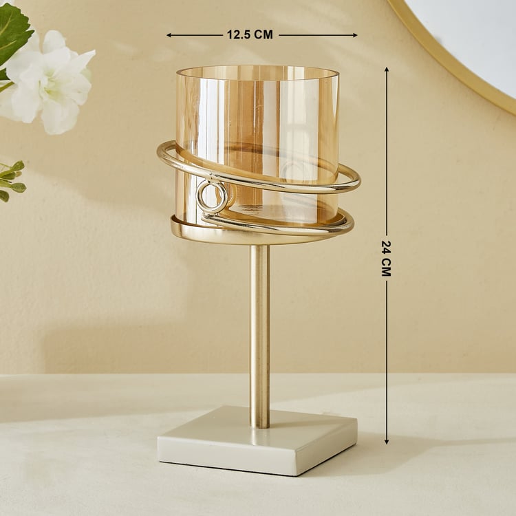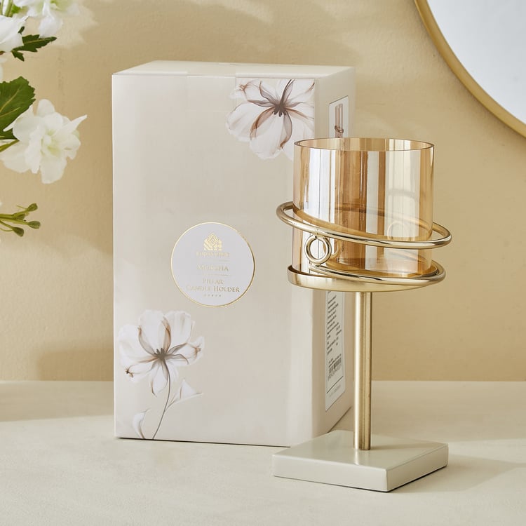 Moksha Loop Metal and Glass Pillar Candle Holder