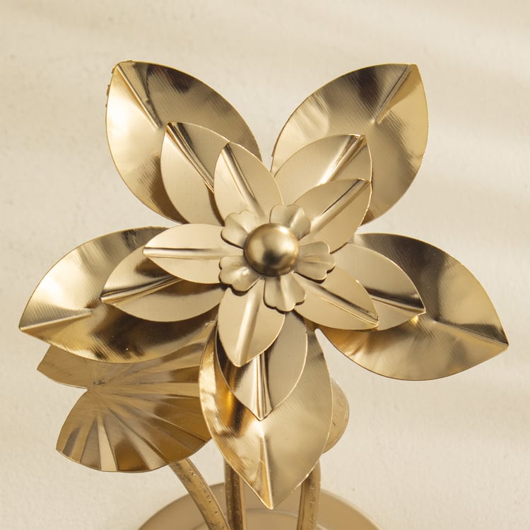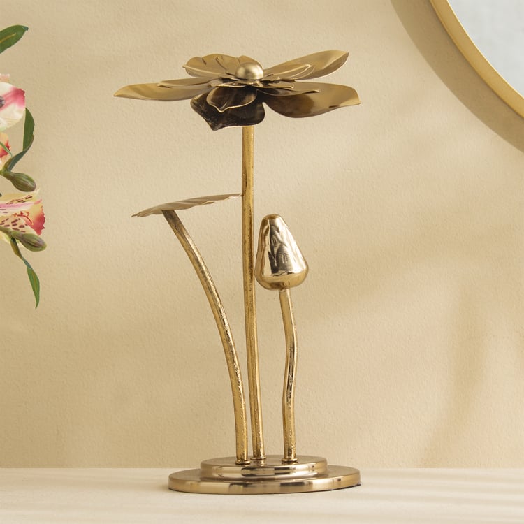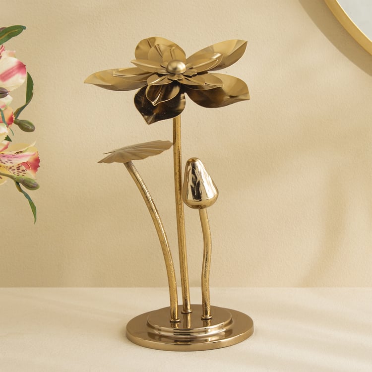 Bring a touch of nature-inspired charm to your space with this iron table accent. Crafted with intricate flower detailing, it adds texture and elegance to any surface, perfect for consoles, coffee tables, or shelves as a unique decorative statement.