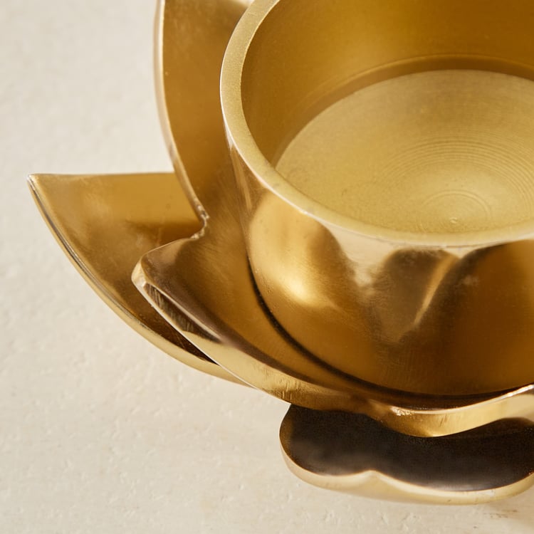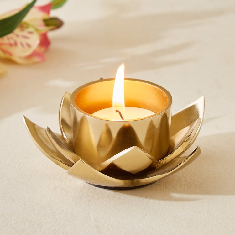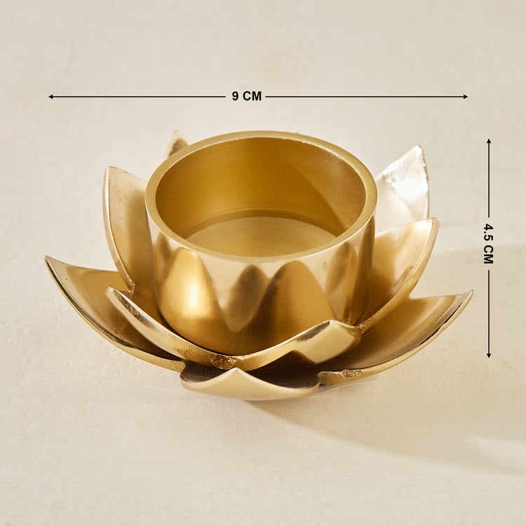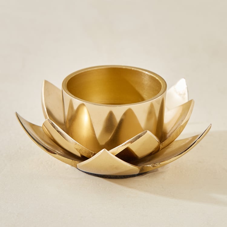 Beautifully crafted from sturdy aluminium, this lotus-shaped T-light holder radiates elegance. Its intricate petals reflect soft candlelight, creating a warm, serene ambience perfect for festive décor or everyday sophistication.