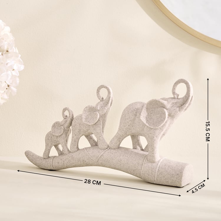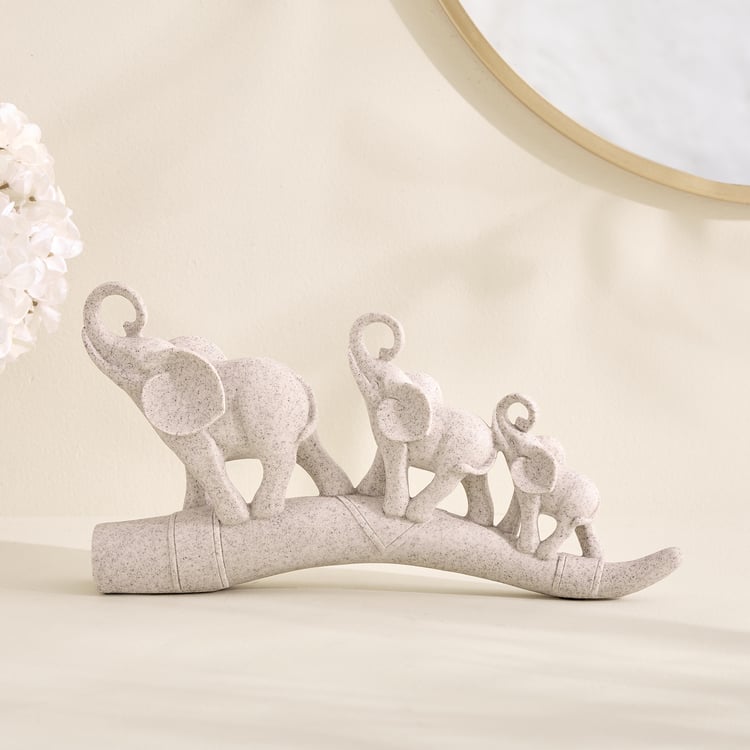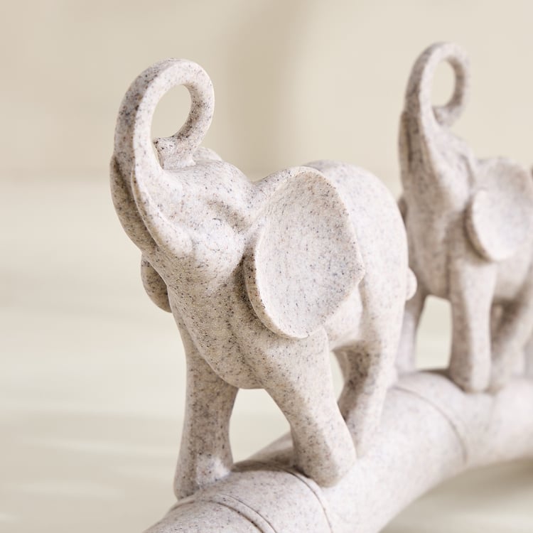 Enhance your decor with this polyresin figurine featuring three elephants on an ivory base. Symbolising wisdom and harmony, it adds a graceful, artistic accent to shelves or tabletops.