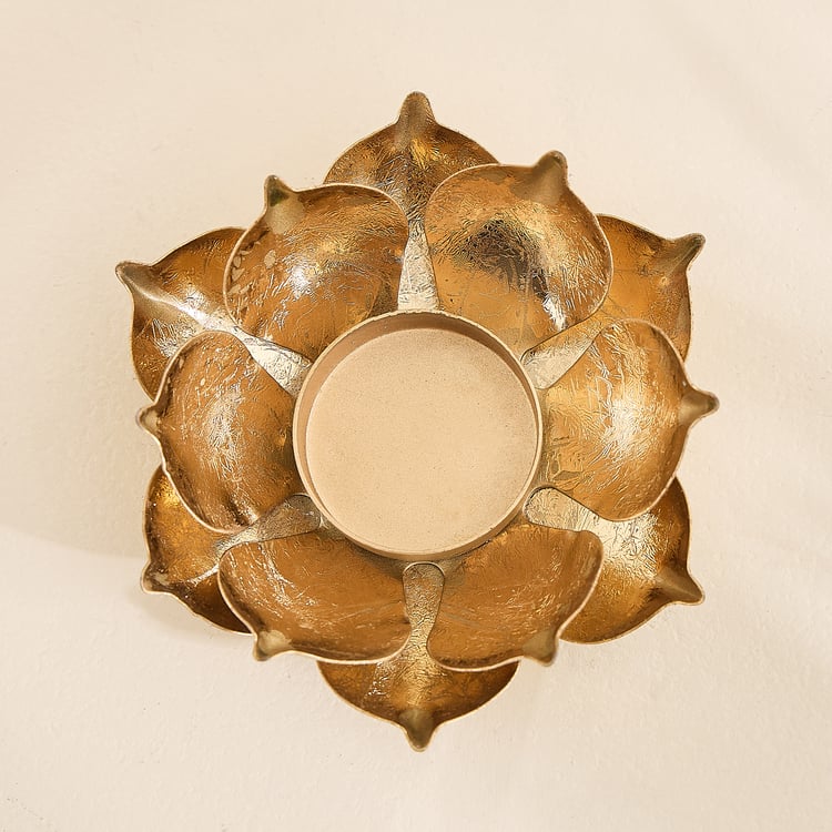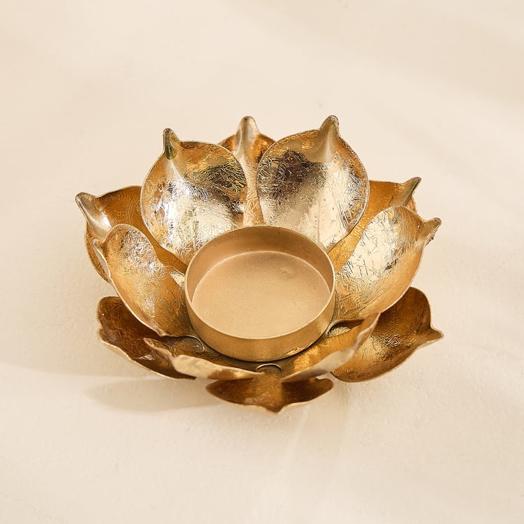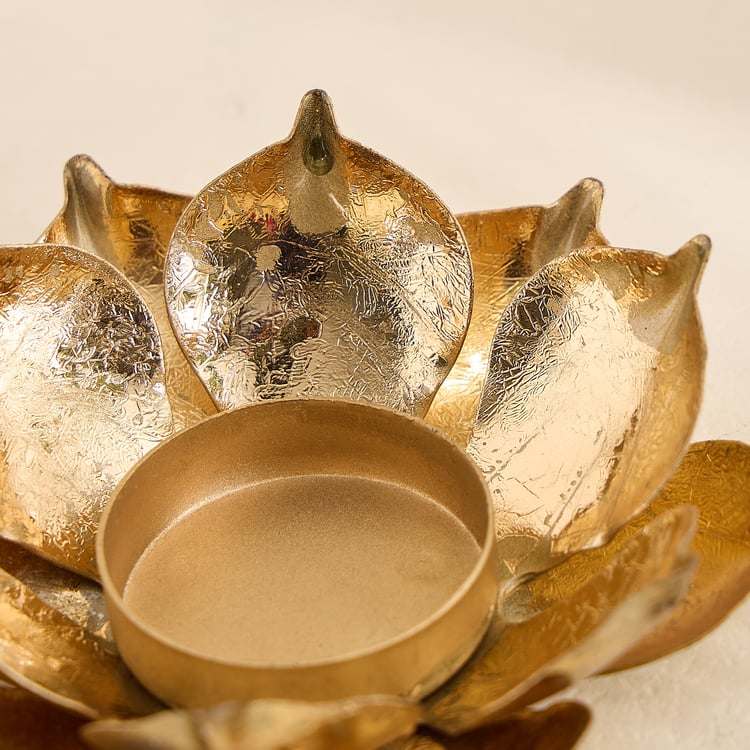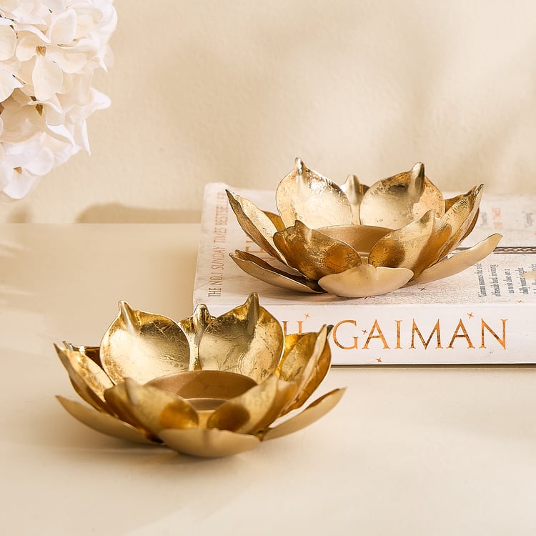 Corsica Nahar Curio Set of 2 Metal Lotus T-Light Holders