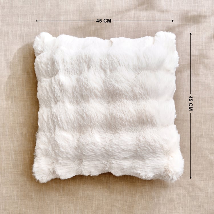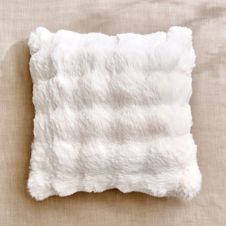 This plush-filled cushion features a cotton outer with a soft fur texture and a convenient zip closure, adding comfort, warmth, and effortless style to sofas, beds, and cosy living spaces.