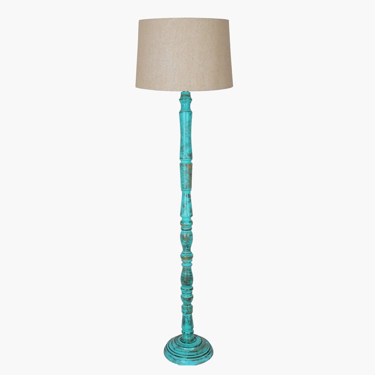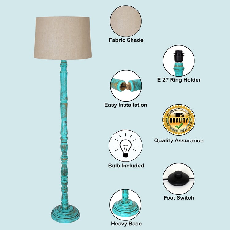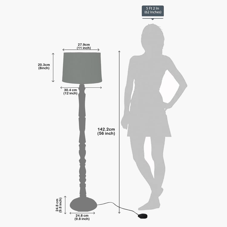 Add timeless charm to your home with this elegant floor lamp, featuring a rustic carved wooden stand and a fabric shade. Designed for everyday ease, it includes a sturdy base, E27 bulb compatibility, and a convenient foot switch for effortless use.