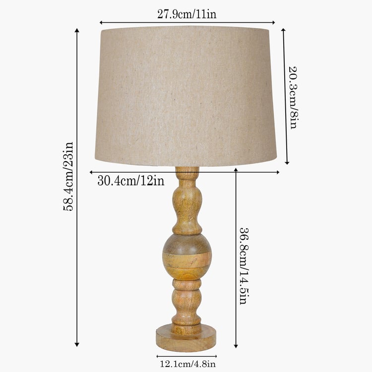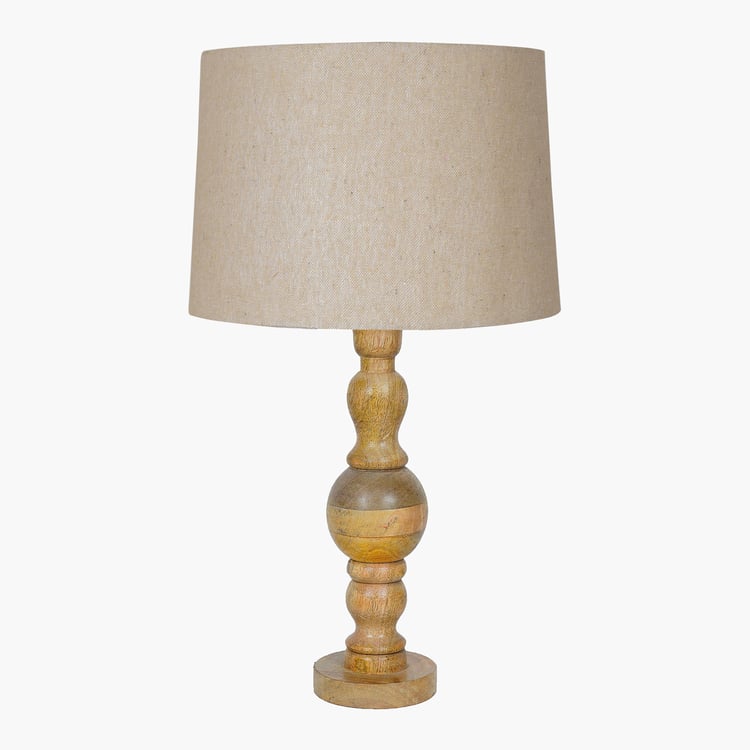 Crafted in a timeless classic style, this elegant table lamp brings a touch of natural beauty to any room. The sturdy wooden base, intricately detailed with a hand-carved design, is paired with a fabric shade that diffuses a warm, soothing glow. Perfect for your nightstand, side table, or beside the sofa and bed, it blends charm with functionality. Designed with an E27 bulb holder, it includes a warm bulb for instant use and a convenient two-pin plug with an on/off switch for easy operation.