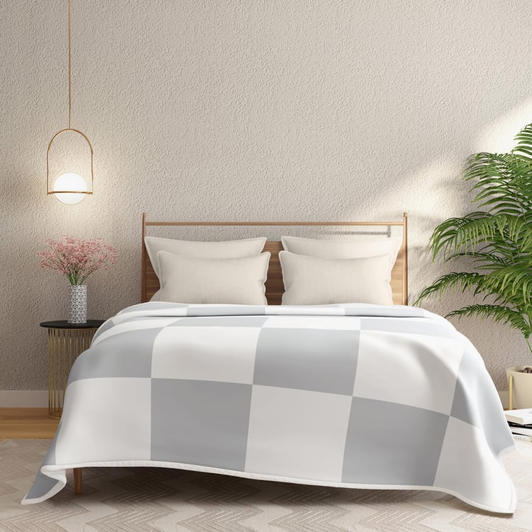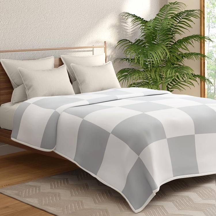 PORTICO Grey Checked Cotton King Dohar - 220x244cm