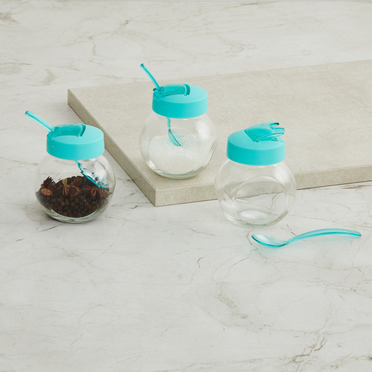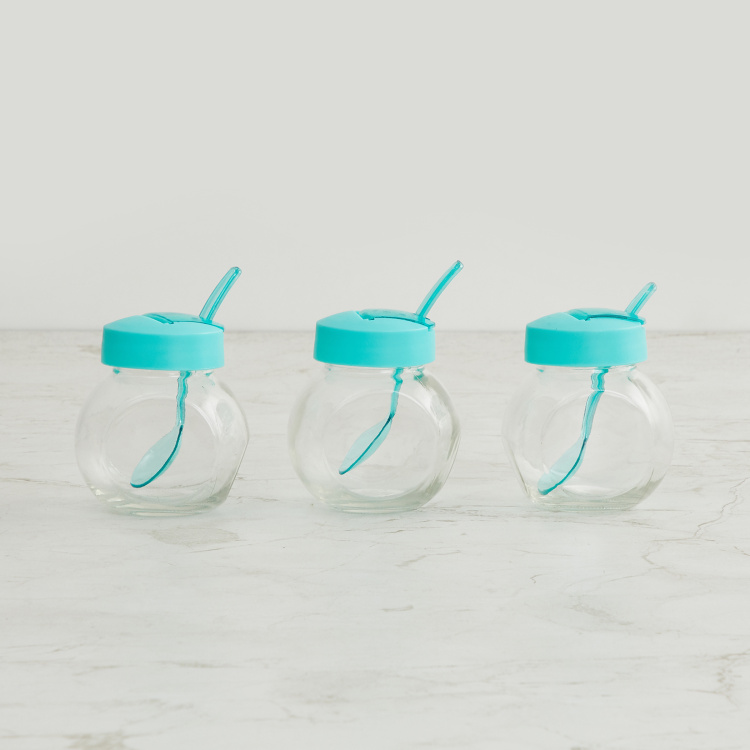 Introducing compact containers that are completely air-tight and keep contents dry and fresh. Crafted with sturdy glass and spoons, this set of condiment jars are an ideal option when it comes to storing snacks or groceries.