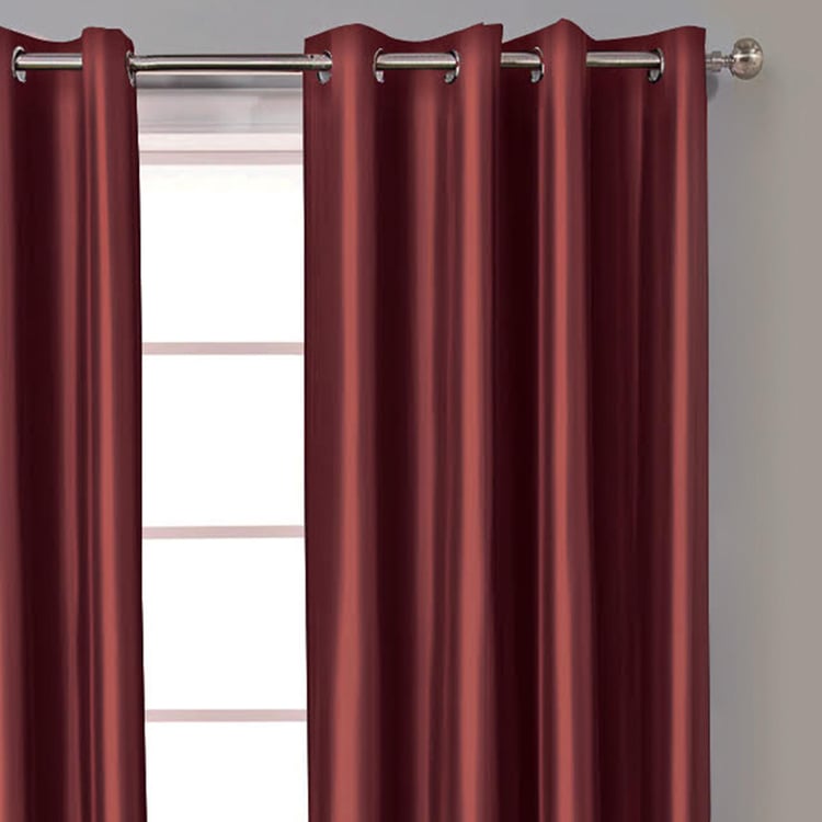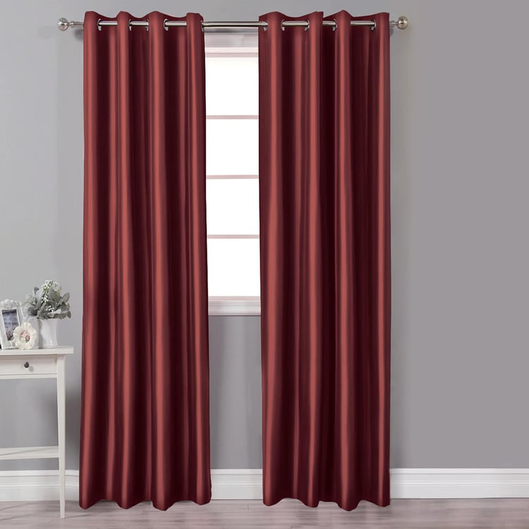 Corsica Solid Red Micro Satin Door Curtain- Set of 2- 110 x 213 cm