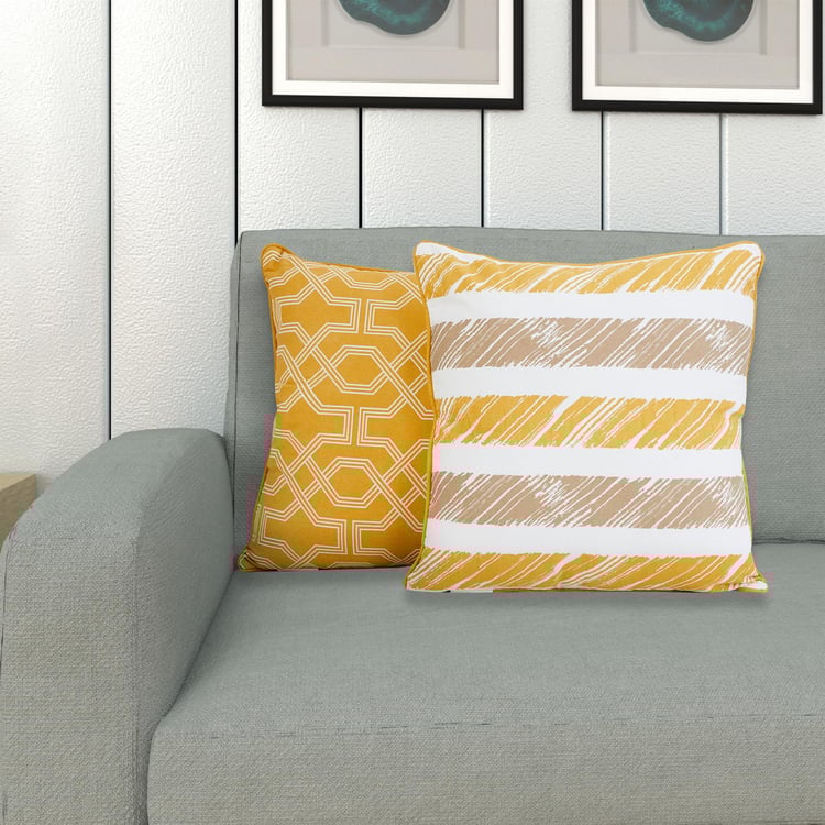 Designed with prints, this filled cushion set is a plush addition to your living room decor. It has been tailored into a square shape with a soft silhouette to bring comfort and class together and impart a personalized touch.