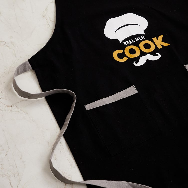 Crafted from cotton, this apron features a printed design and a pocket. It is highly functional and protects you from stains while cooking.