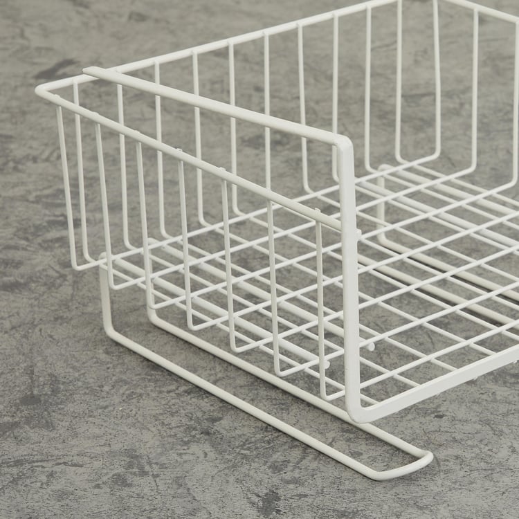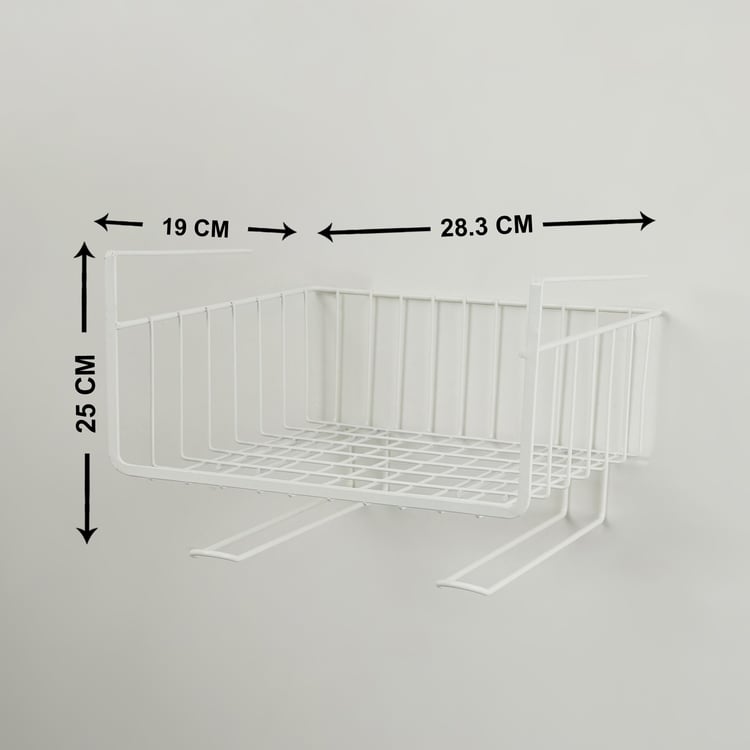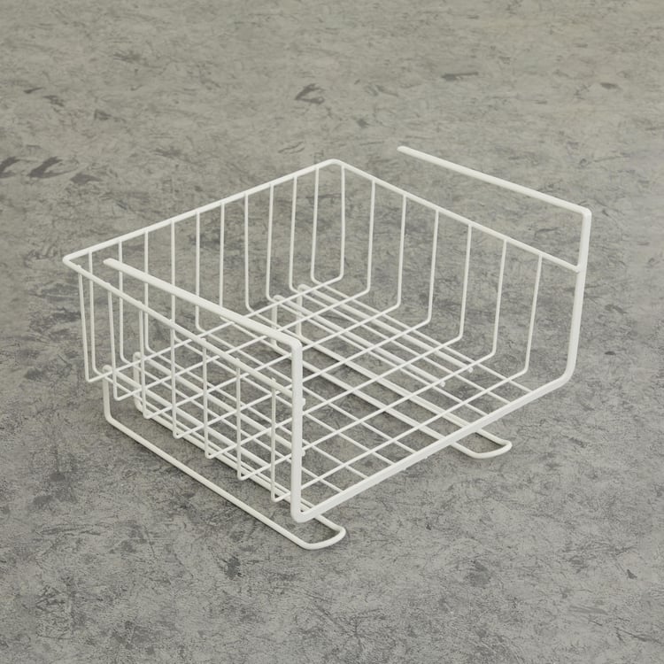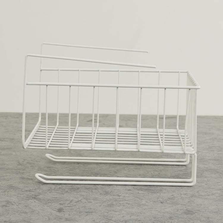 A beautiful way to free up some extra space in your kitchen is this metal over the shelf utensil holder basket. The modular concept can customize the arrangement as per the drawer size & required space. Complete coordinated range with white & natural wood look caters to various organizing needs in the kitchen. The powder-coated finish makes it resistant to chipping, scratching, fading, and wearing thus long-lasting. It exhibits superior colour retention. It is non-toxic completely eco friendly for use and disposal. This versatile holder comes fully assembled and ready to use. It has a storage shelf and two hanging hooks to organise your mugs and keeps handy your daily kitchen essentials like napkins etc. Attach and remove it anywhere as per convenience. Conserve space with style.