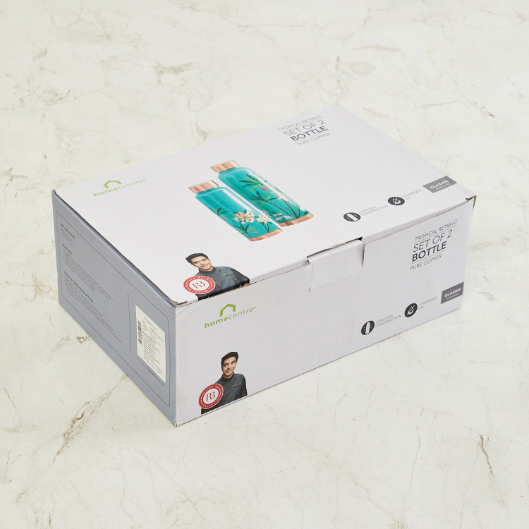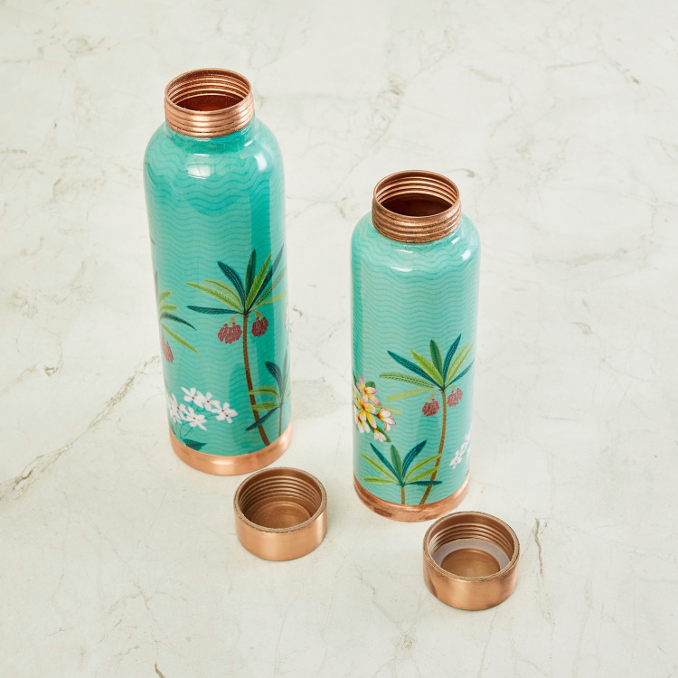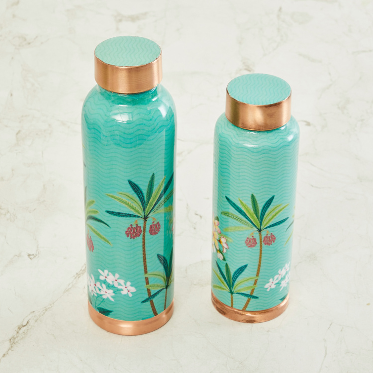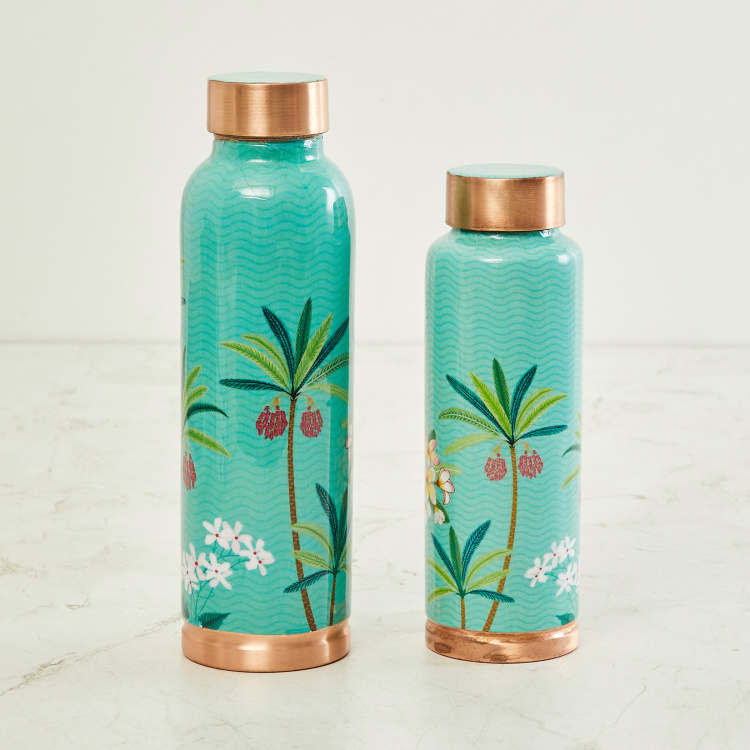Tropical Retreat Blue Printed Copper Bottle - 900 + 600 ml - Set of 2