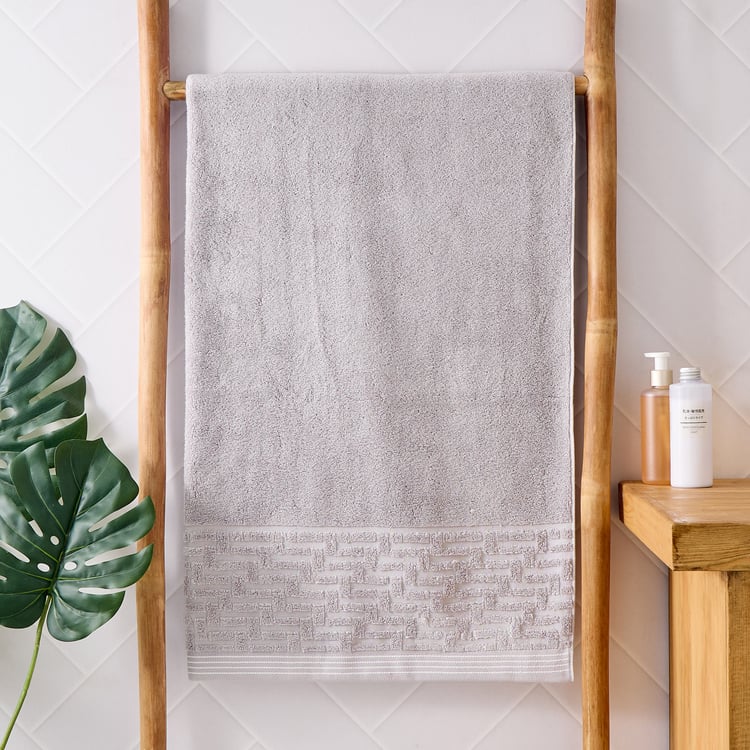 Elevate your everyday essentials with this premium pure cotton bath towel, finished with a stylish patterned border. Featuring a zero-twist weave and waffle texture, it delivers superior softness, quick absorbency, and long-lasting durability, making it a perfect blend of comfort and style.