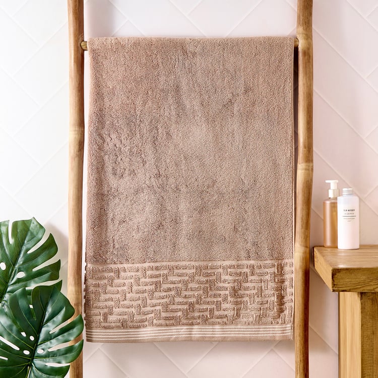Elevate your everyday essentials with this premium pure cotton bath towel, finished with a stylish patterned border. Featuring a zero-twist weave and waffle texture, it delivers superior softness, quick absorbency, and long-lasting durability, making it a perfect blend of comfort and style.