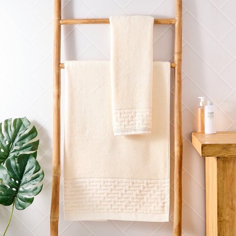 Elevate your everyday essentials with this premium pure cotton hand towel, finished with a stylish patterned border. Featuring a zero-twist weave and waffle texture, it delivers superior softness, quick absorbency, and long-lasting durability, making it a perfect blend of comfort and style.