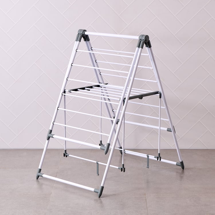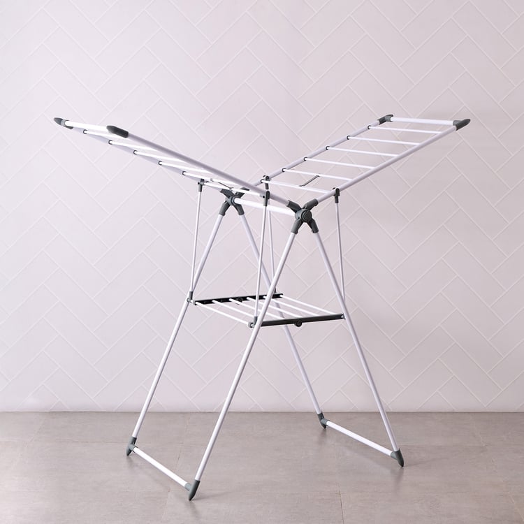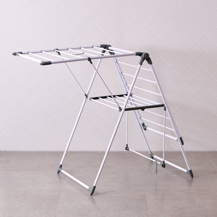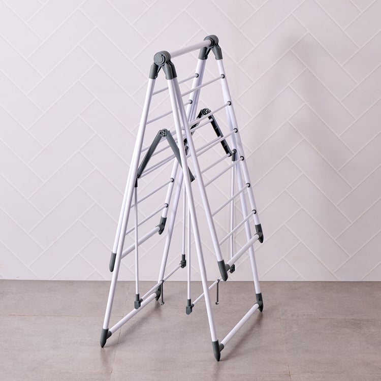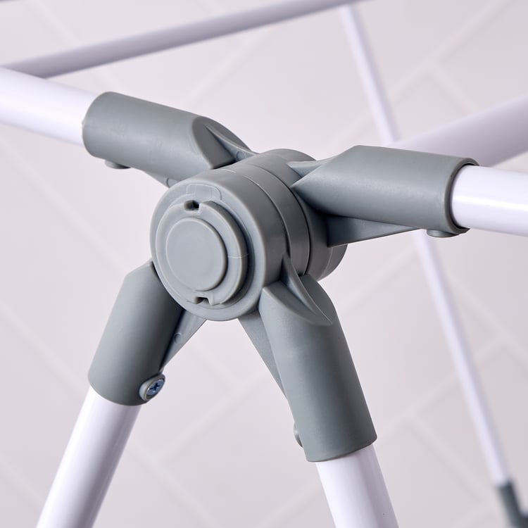 Keep your laundry routine hassle-free with this free-standing iron and plastic drying stand. Designed for stability and convenience, it offers ample space to air-dry clothes indoors or outdoors with ease.
