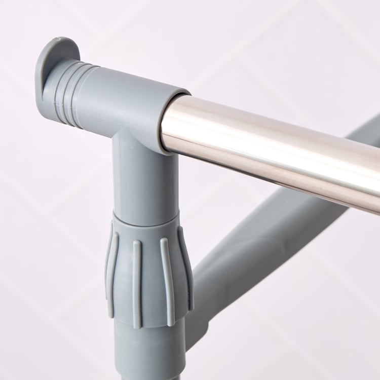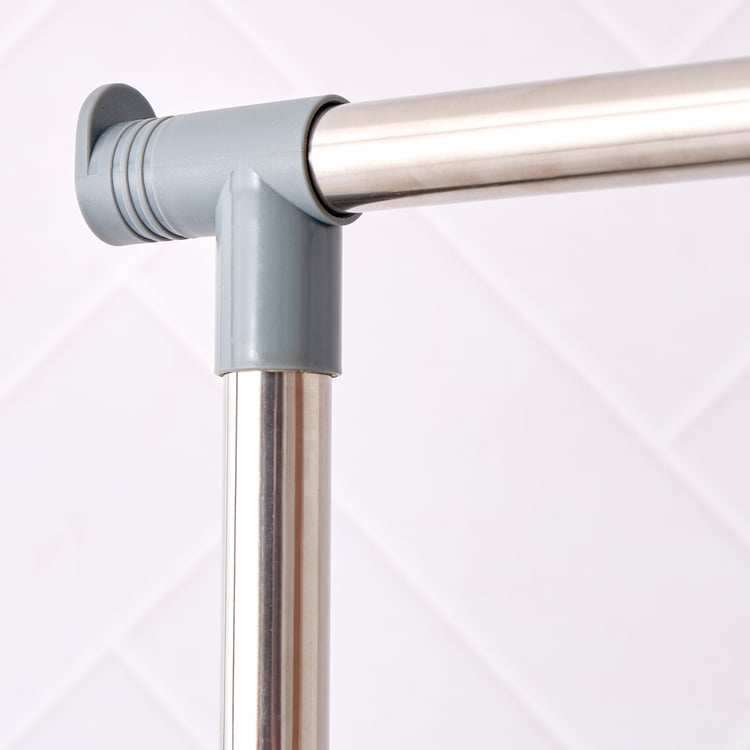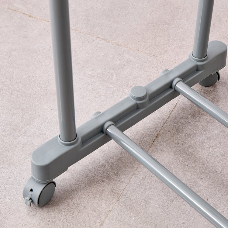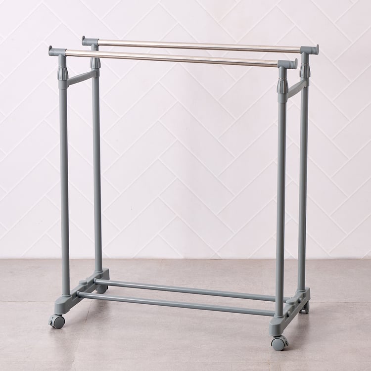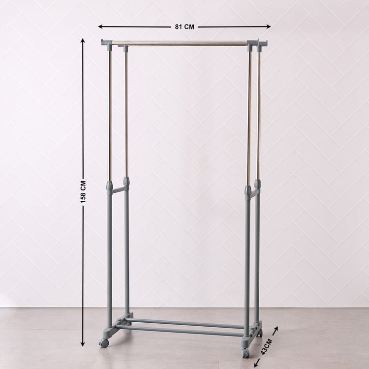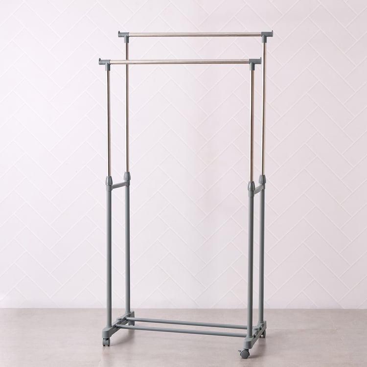 Upgrade your storage with this sleek and sturdy double garment rack. Crafted from durable iron, it offers generous hanging space, modern design, and mobility, keeping clothes organised, accessible, and wrinkle-free.