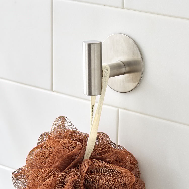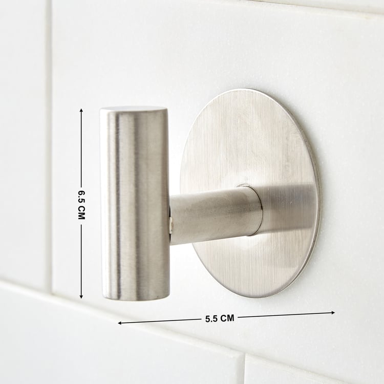 This stainless steel adhesive hook features a strong backing for secure, drill-free attachment on smooth surfaces. It offers rust-resistant durability, easy installation, reusable use, and practical organisation for your bathrooms.