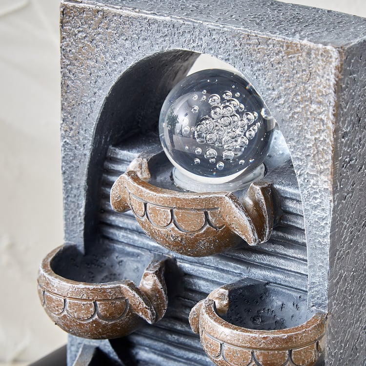 Enhance your decor with this polyresin diya water fountain featuring a rotating ball. Its soft water flow and warm glow create a peaceful, spiritual ambience perfect for any indoor space.