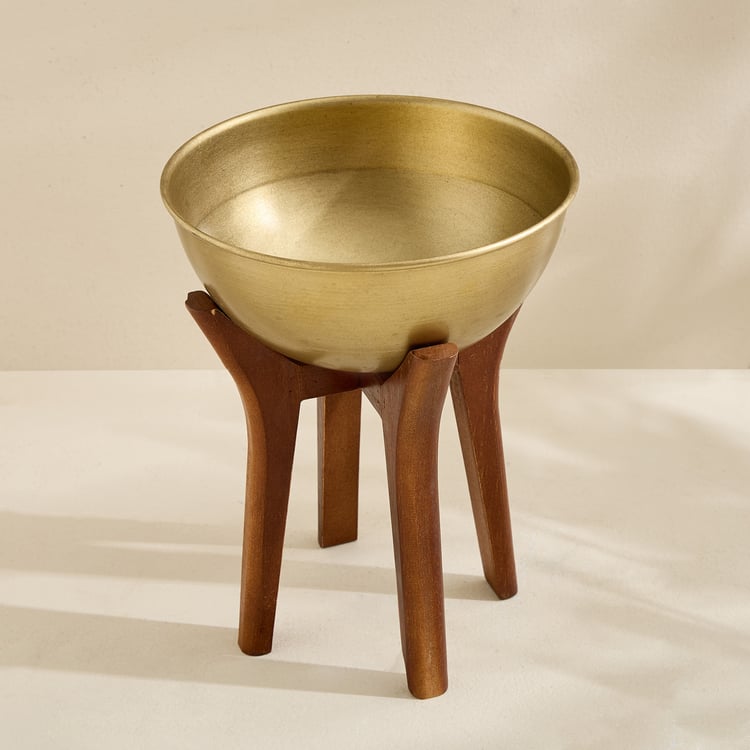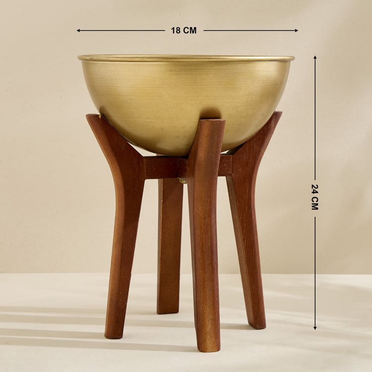 This planter blends sturdy iron with warm wood accents to create a stylish, durable display piece. Its contemporary design enhances indoor or outdoor décor while securely supporting your favourite plants.