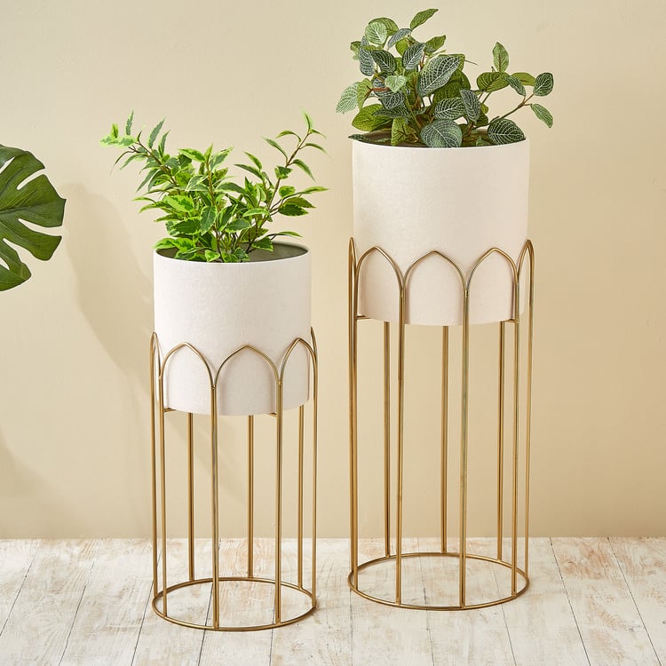 Gardenia Ferra Set of 2 Metal Scallop Floor Planters with Stand