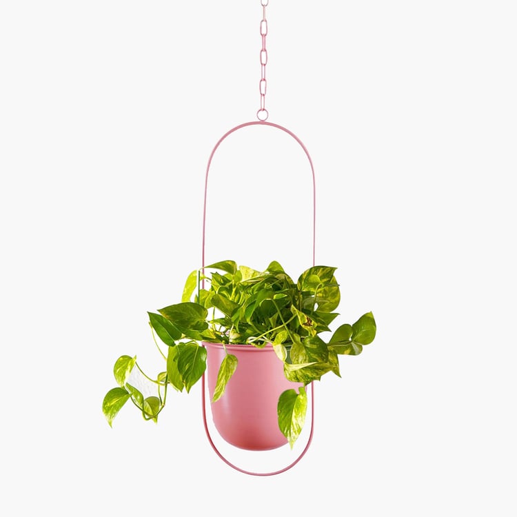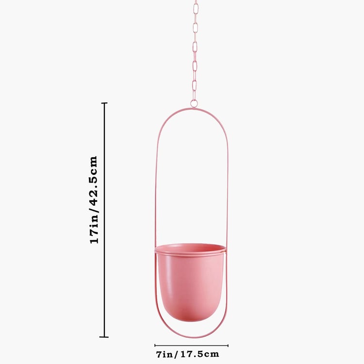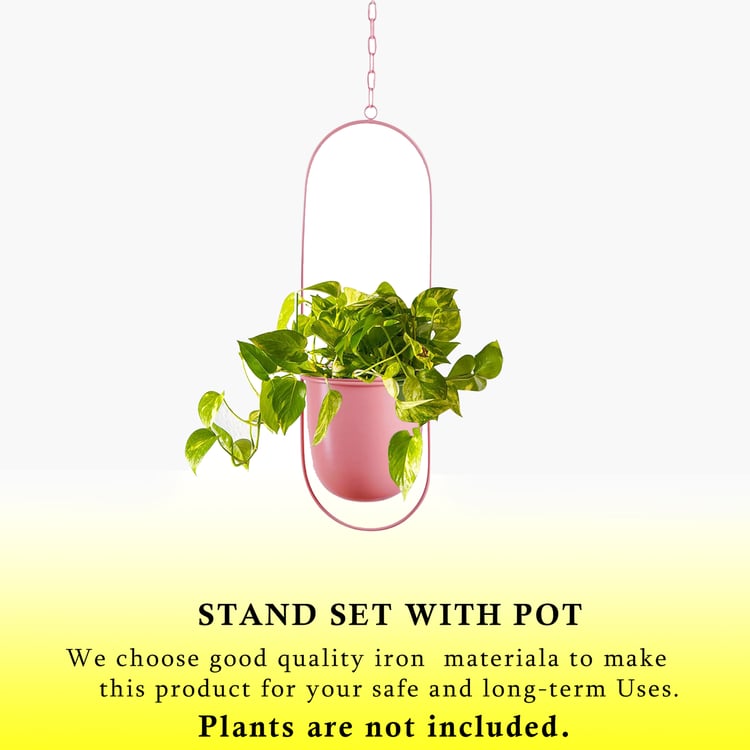 Add a modern decorative touch to your space with this metal hanging planter, designed to elevate any interior or balcony. Crafted from durable iron, it features a sturdy oblong stand with a matching hanging chain for secure suspension. The minimalist metal frame beautifully highlights plants while ensuring long-lasting strength and stability.