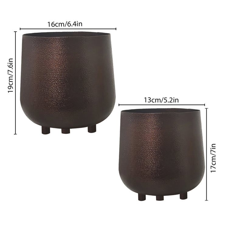 Enhance your indoor or outdoor decor with this set of two planters, designed to combine functionality with style. This set, crafted from durable metal, includes two planters in different sizes. Ideal for herbs, flowering plants, fresh greens, or succulents, these planters add a refined touch to any space.