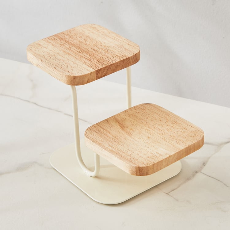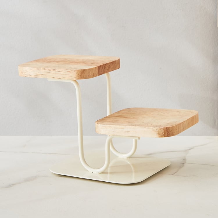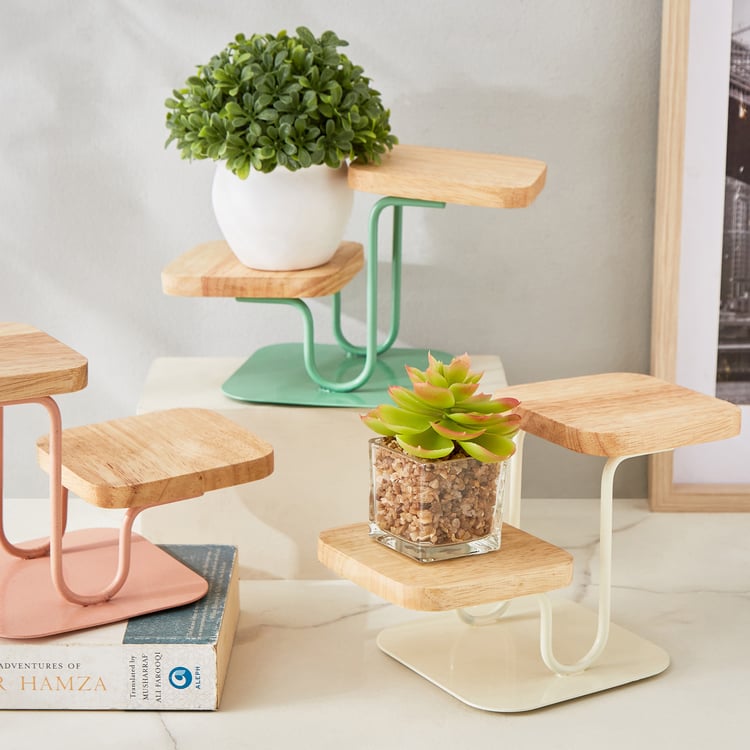 Showcase your plants with this stylish tabletop planter stand. Featuring a sturdy metal frame and a wooden base, it provides a functional yet elegant display for your greenery. Ideal for enhancing any room's decor, this stand beautifully highlights your plants.