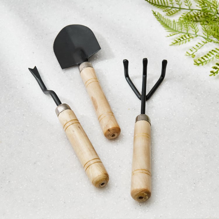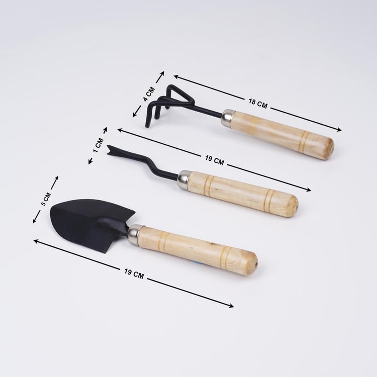 Lets Garden Soil Set of 3 Iron Gardening Tools with Wooden Handle