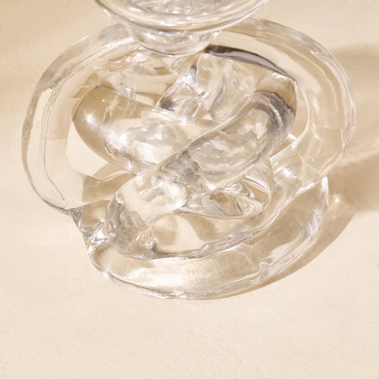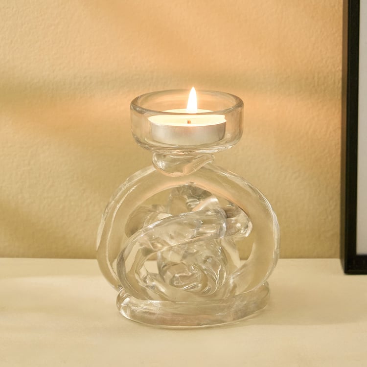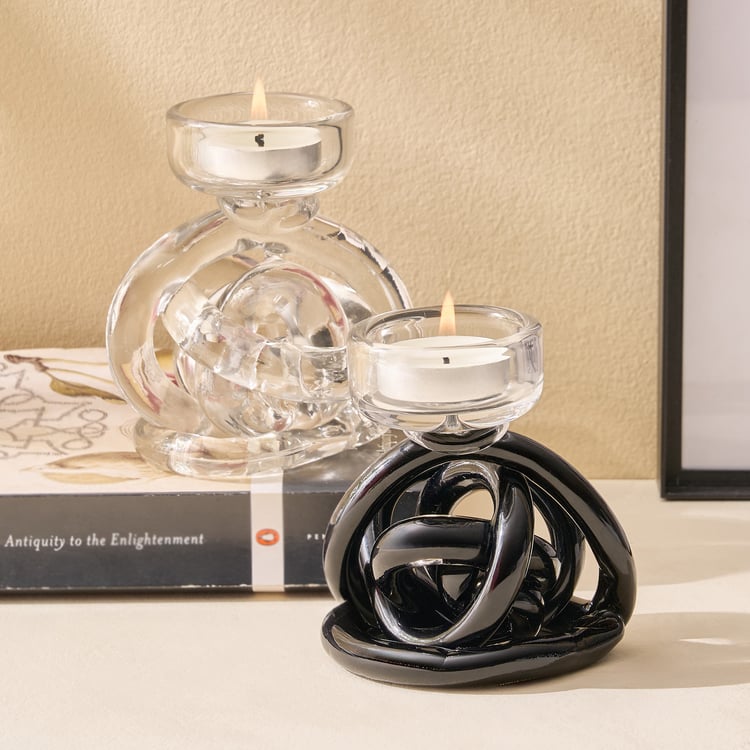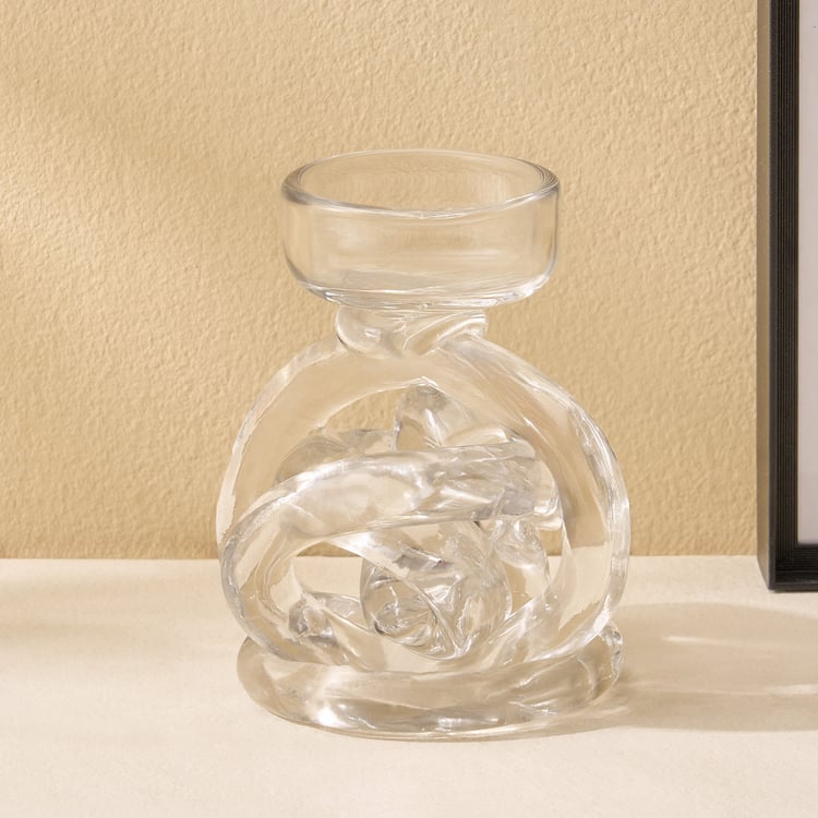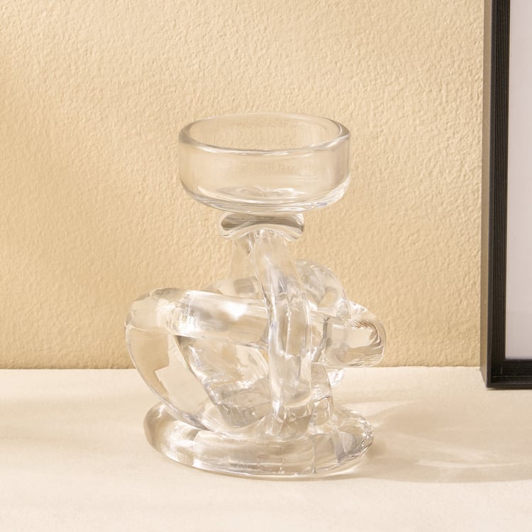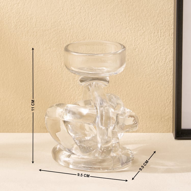 Add a touch of modern elegance to your space with this uniquely knotted T-light holder. Crafted from premium glass, its sculptural design beautifully reflects the glow of candlelight. A chic accent piece, it instantly elevates the warmth and style of your home decor.