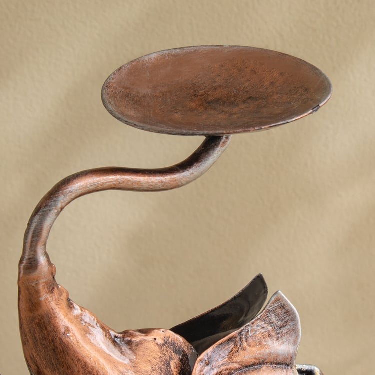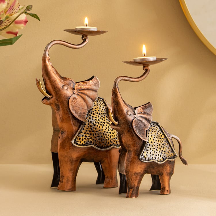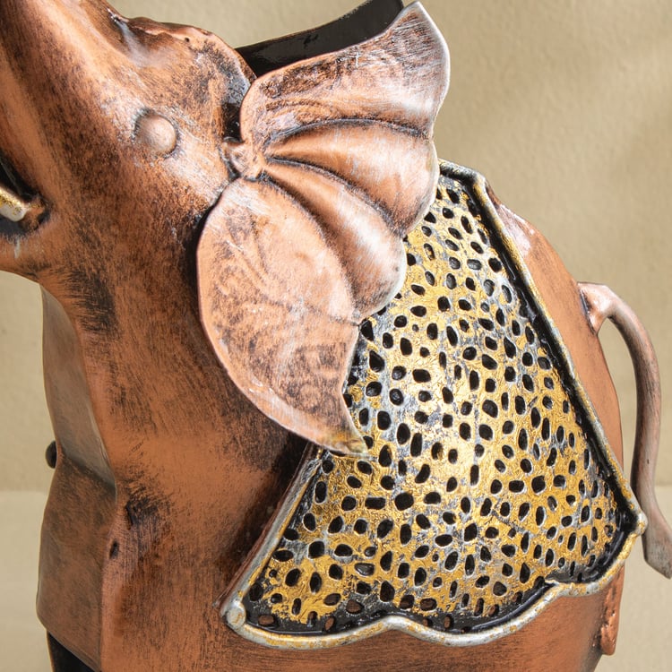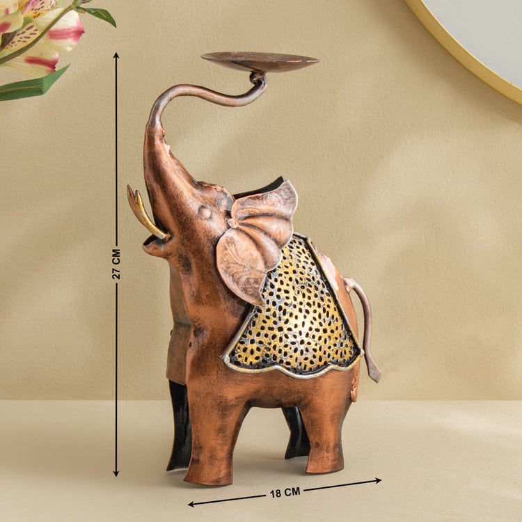 Illuminate your space with this t-light holder. Crafted from durable metal, it combines functionality and charm with its unique elephant design, adding a warm, decorative touch to any room or festive setting.