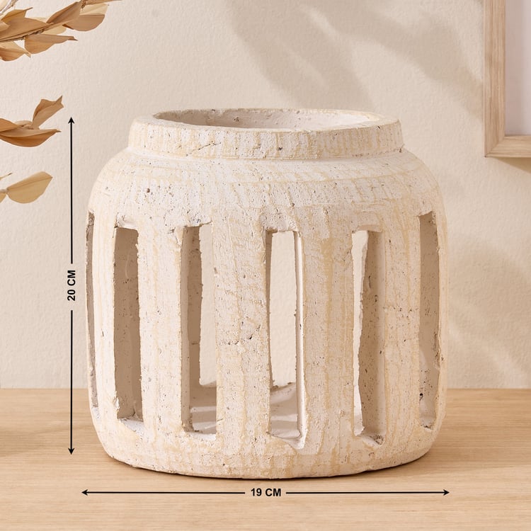 This modern lantern features a ceramic frame and cut-work window. Perfect for candles, it brings warm, ambient light indoors or outdoors.