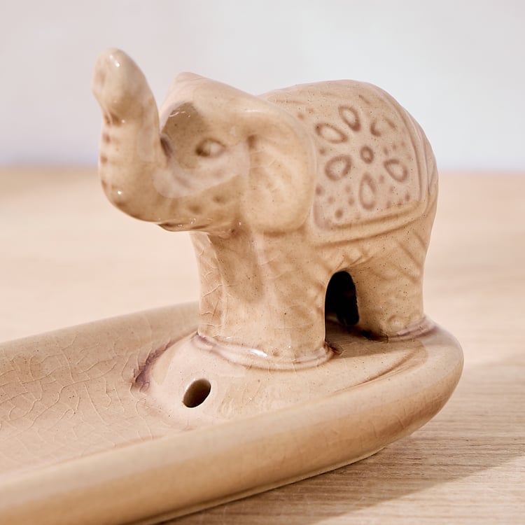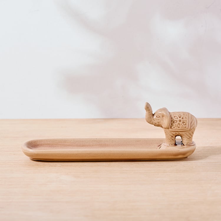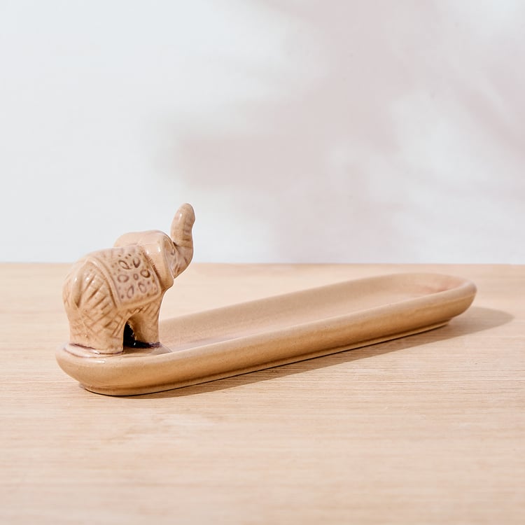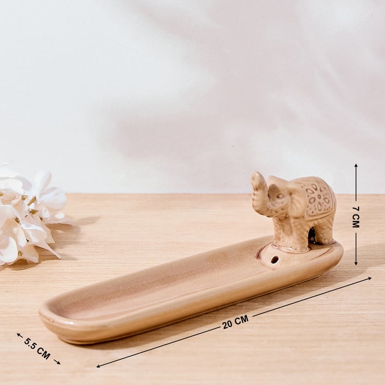 A serene accent piece, this incense holder brings calming energy to your space. Made of ceramic with an elephant figurine and an extended tray to neatly catch ash while holding incense sticks. Ideal for meditation corners, entryways, living rooms, or pooja setups to enhance peaceful rituals and fragrance moments.