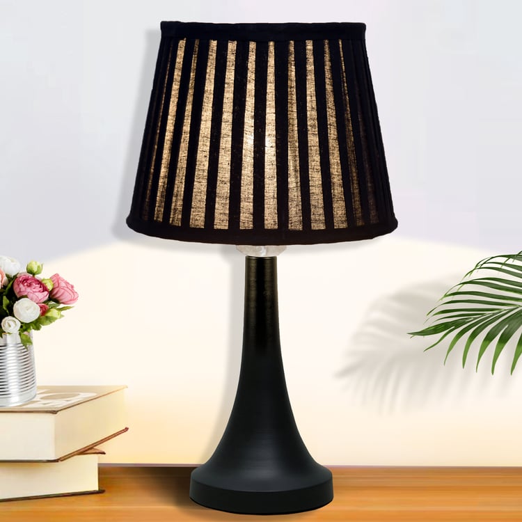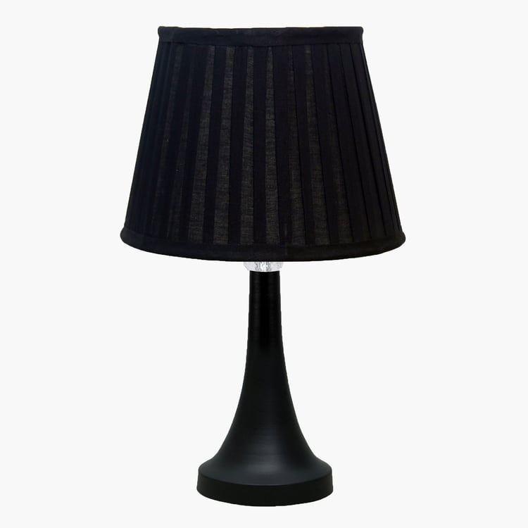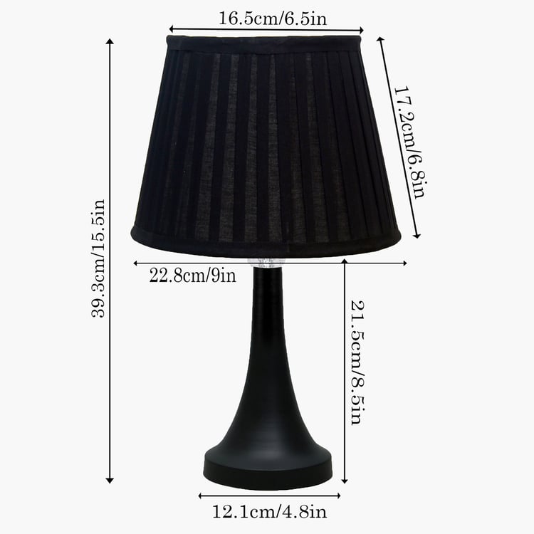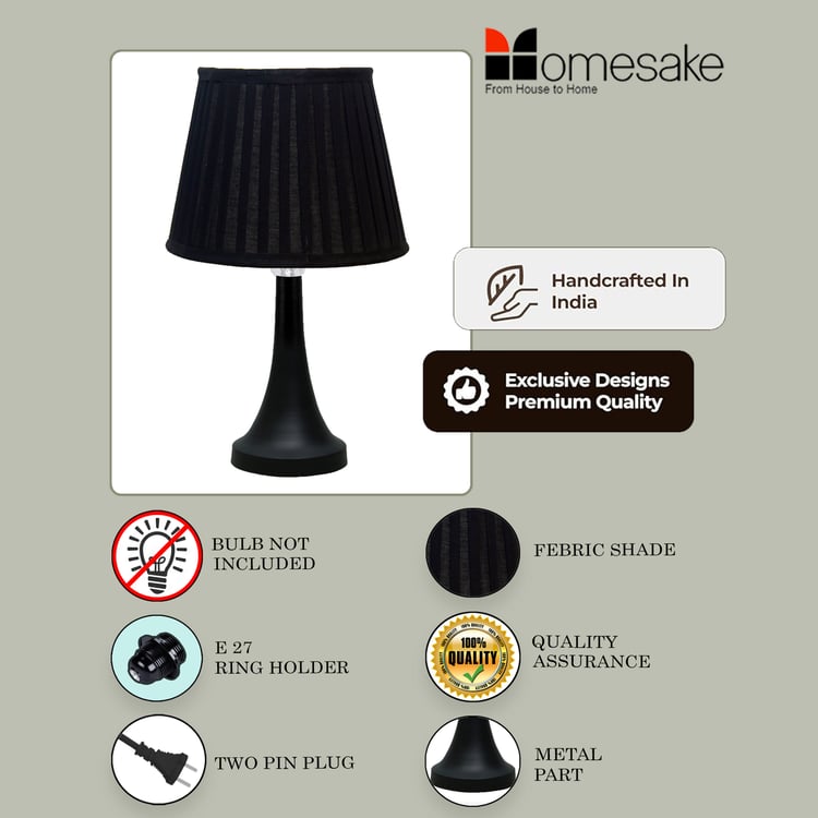 Bring timeless charm to your home with this elegant table lamp, featuring a pleated fabric shade that casts a soft, inviting glow, paired with a beautifully crafted decorative metal base that ensures lasting stability. Handcrafted in India with premium materials and fine craftsmanship, it includes a standard E27 holder (bulb not included) and a convenient two-pin plug, perfect for bedside tables, desks, or living rooms.