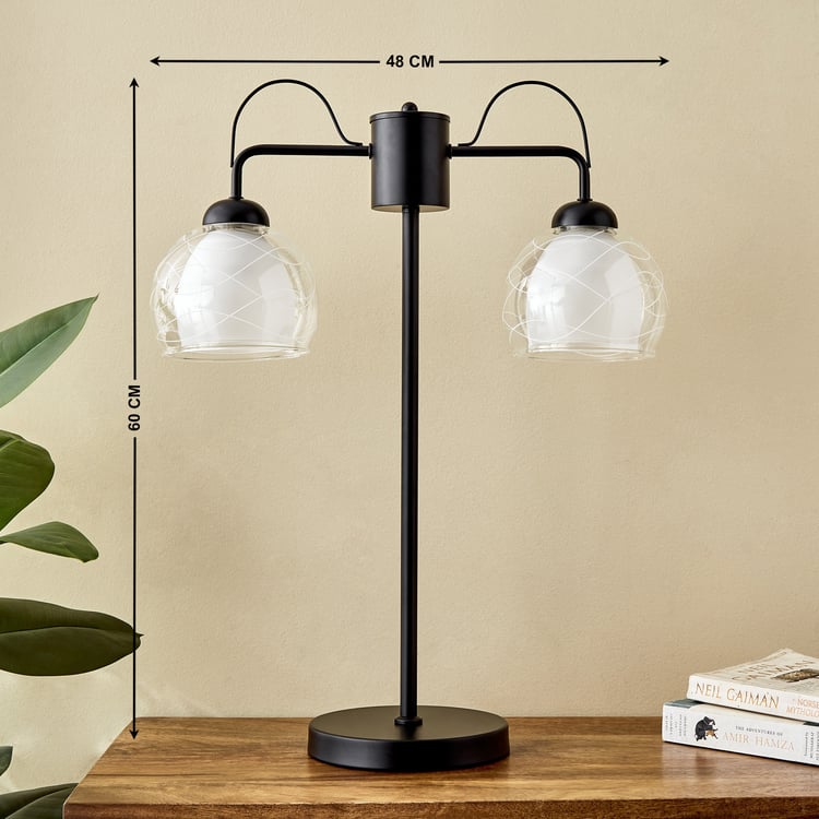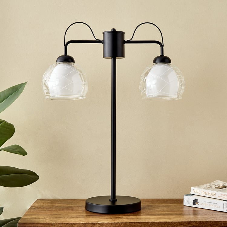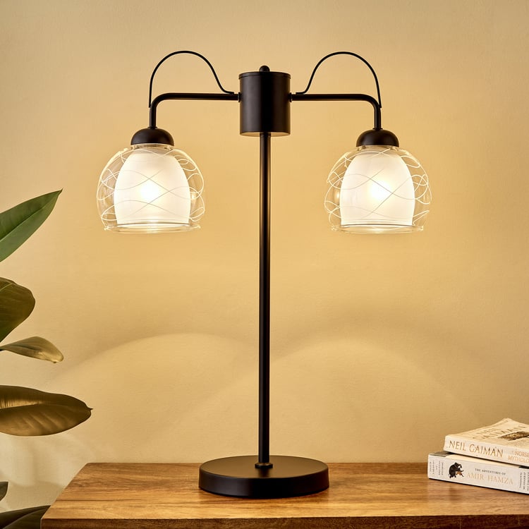 Elevate the elegance of any room with this table lamp. Featuring a sturdy iron base and glass shade for lasting stability, it casts a soft, warm glow that creates a cosy and inviting ambiance. Ideal for bedside tables or living spaces.