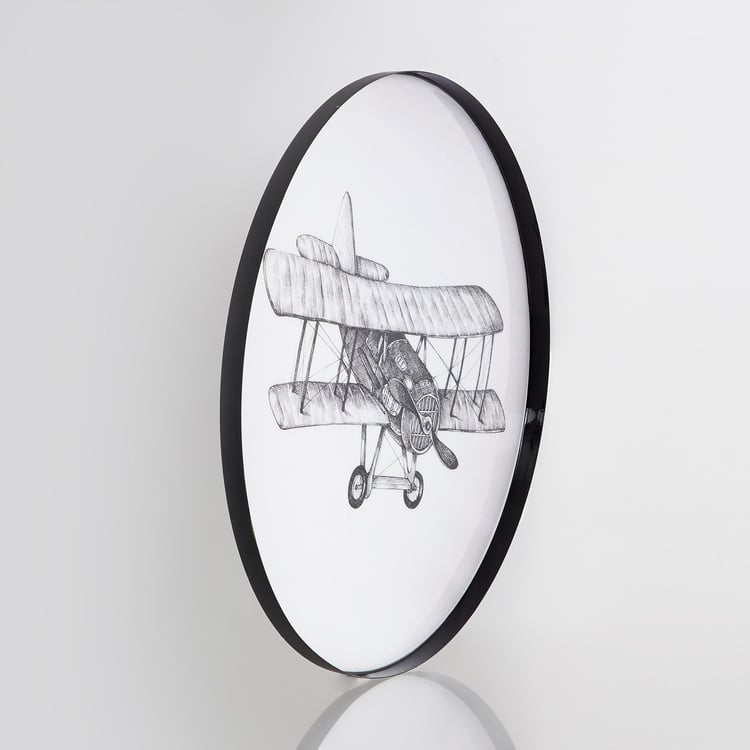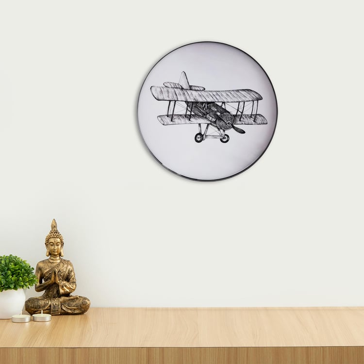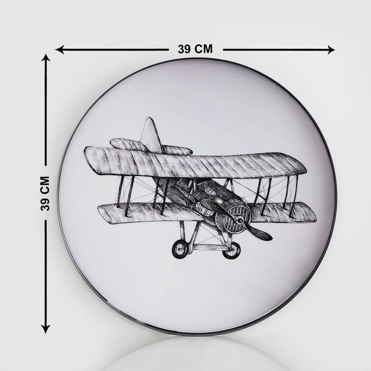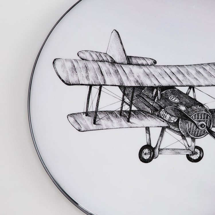 Artesia Off-White And Black Plane Printed Metal Wall Plate