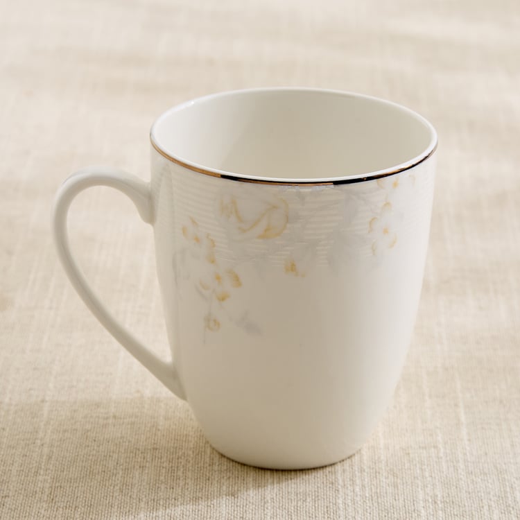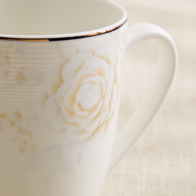 Savour every sip of coffee with this mug. Crafted from bone china, it is durable, lightweight, and long-lasting. The delicate floral prints combine with gleaming patterns for a visually stunning piece.