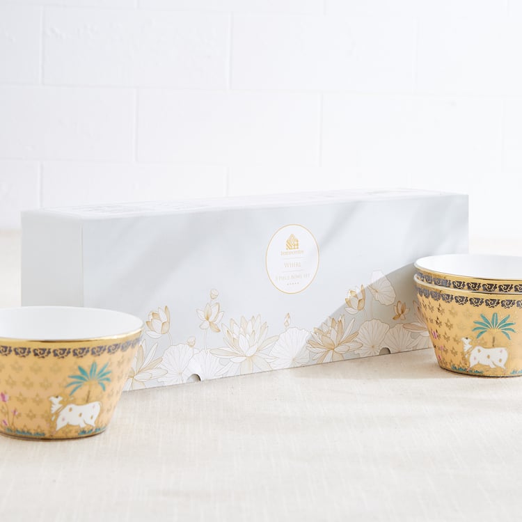 Corsica Iris Emily Set of 3 Bone China Printed Serving Bowls - 320ml