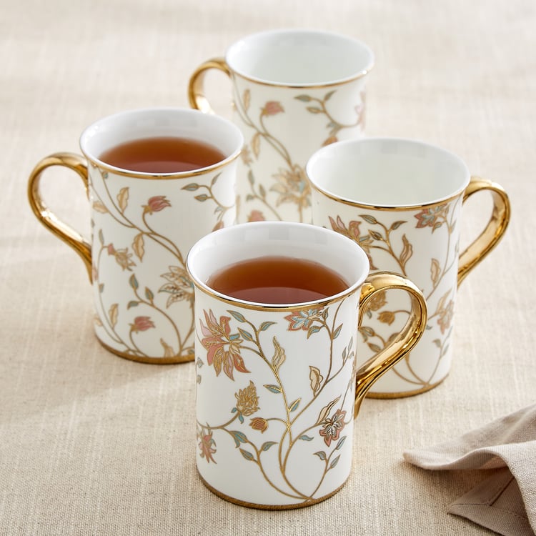 Ebony Annie Set of 4 Bone China Floral Print Coffee Mugs - 390ml