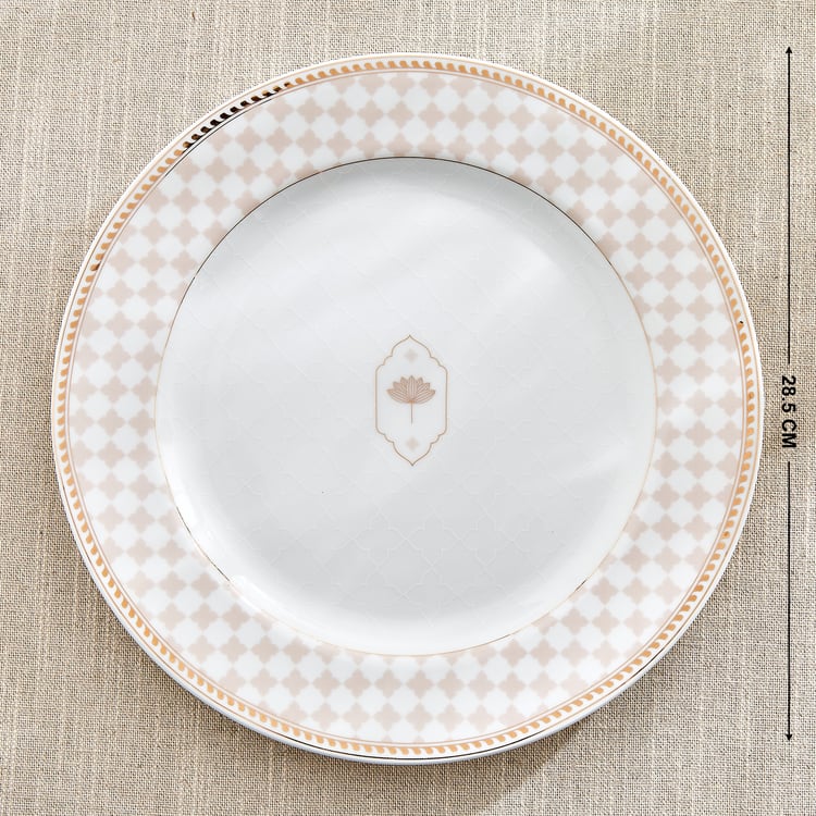 India Inspired Lotus Georgian Bone China Printed Dinner Plate - 28.5cm
