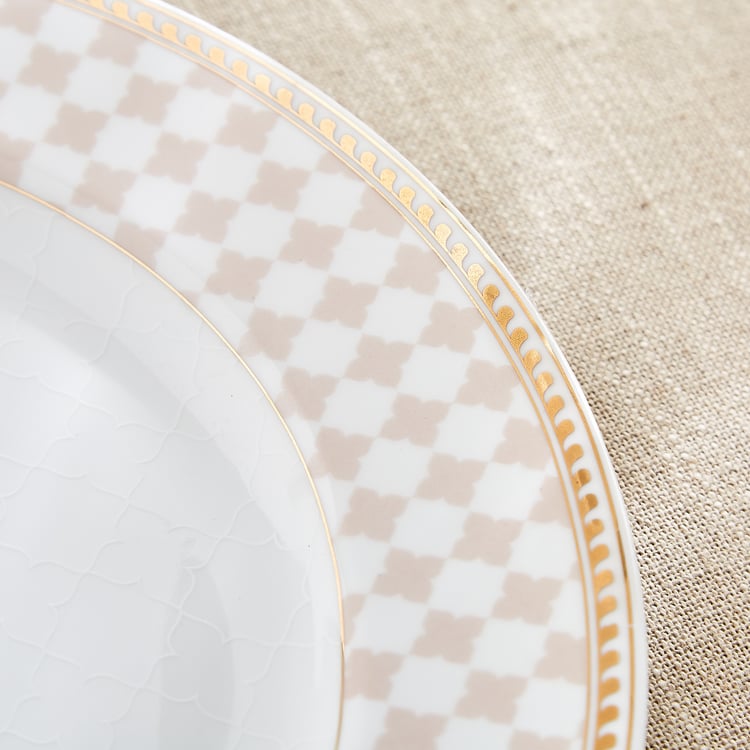 Elegant and timeless, this bone china printed dinner plate features delicate patterns and a smooth finish. Perfect for both everyday dining and special occasions, it adds a touch of sophistication to any table.