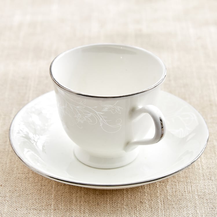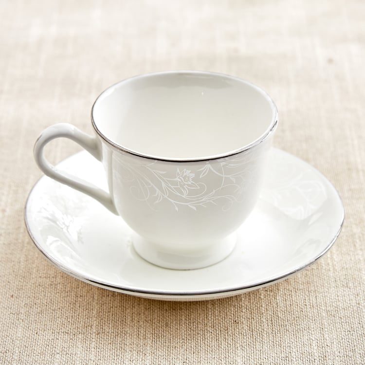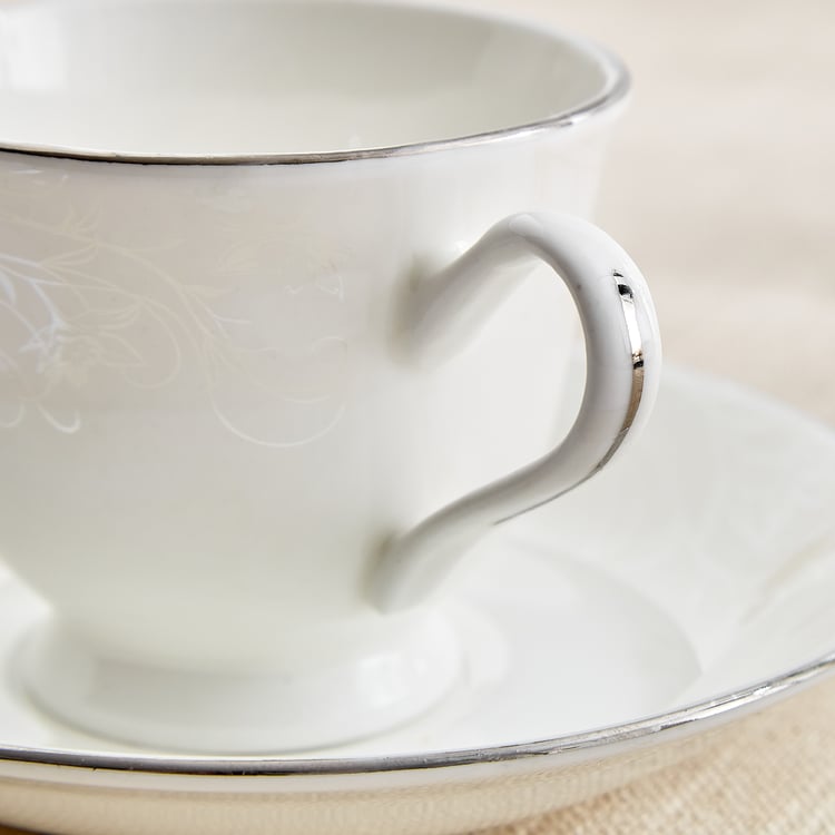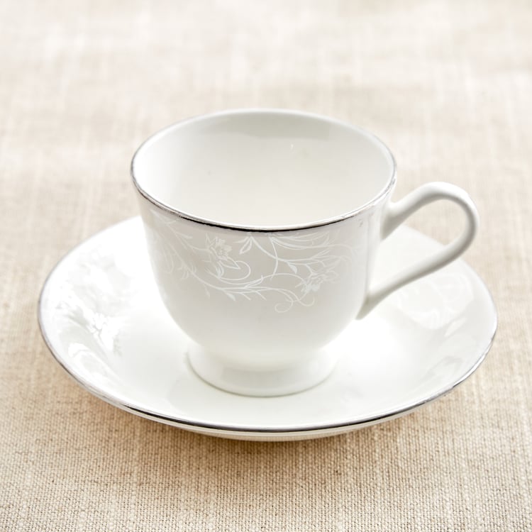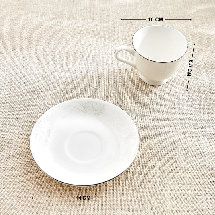 Ivory Zilver Set of 6 Bone China Printed Cup and Saucer - 180ml
