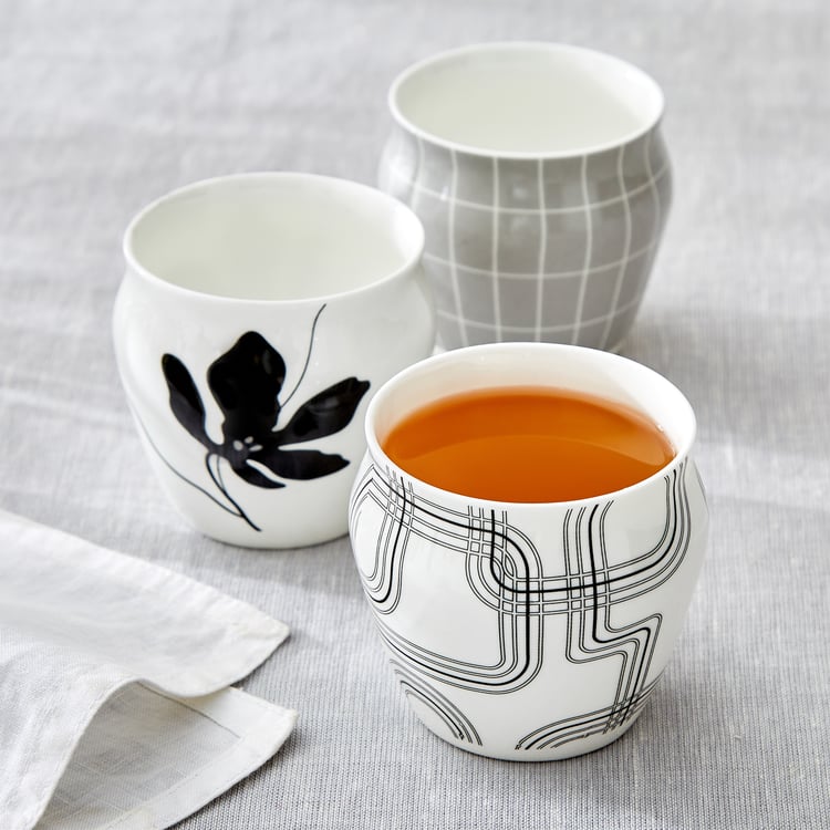Mandarin Monochrome Set of 3 Bone China Printed Kulhads - 240ml
