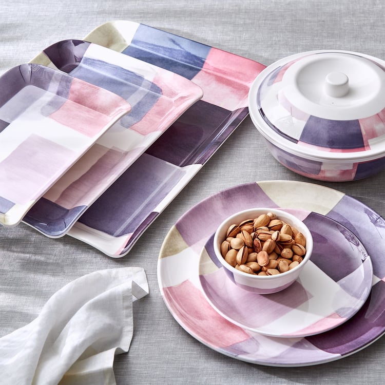 Crafted with a sleek finish, this serving bowl set is designed with a printed surface and sturdy melamine material. The alluring hue with a glistening finish showcases the perfect table vibes and food in the setting.
